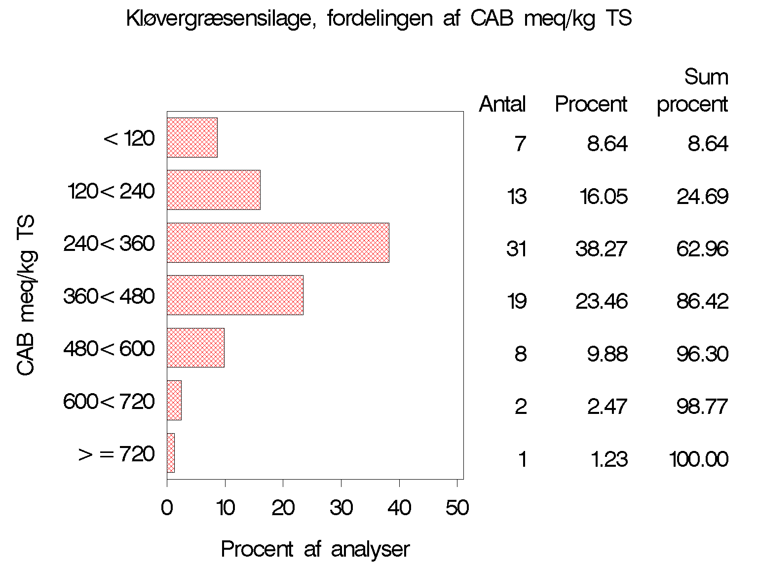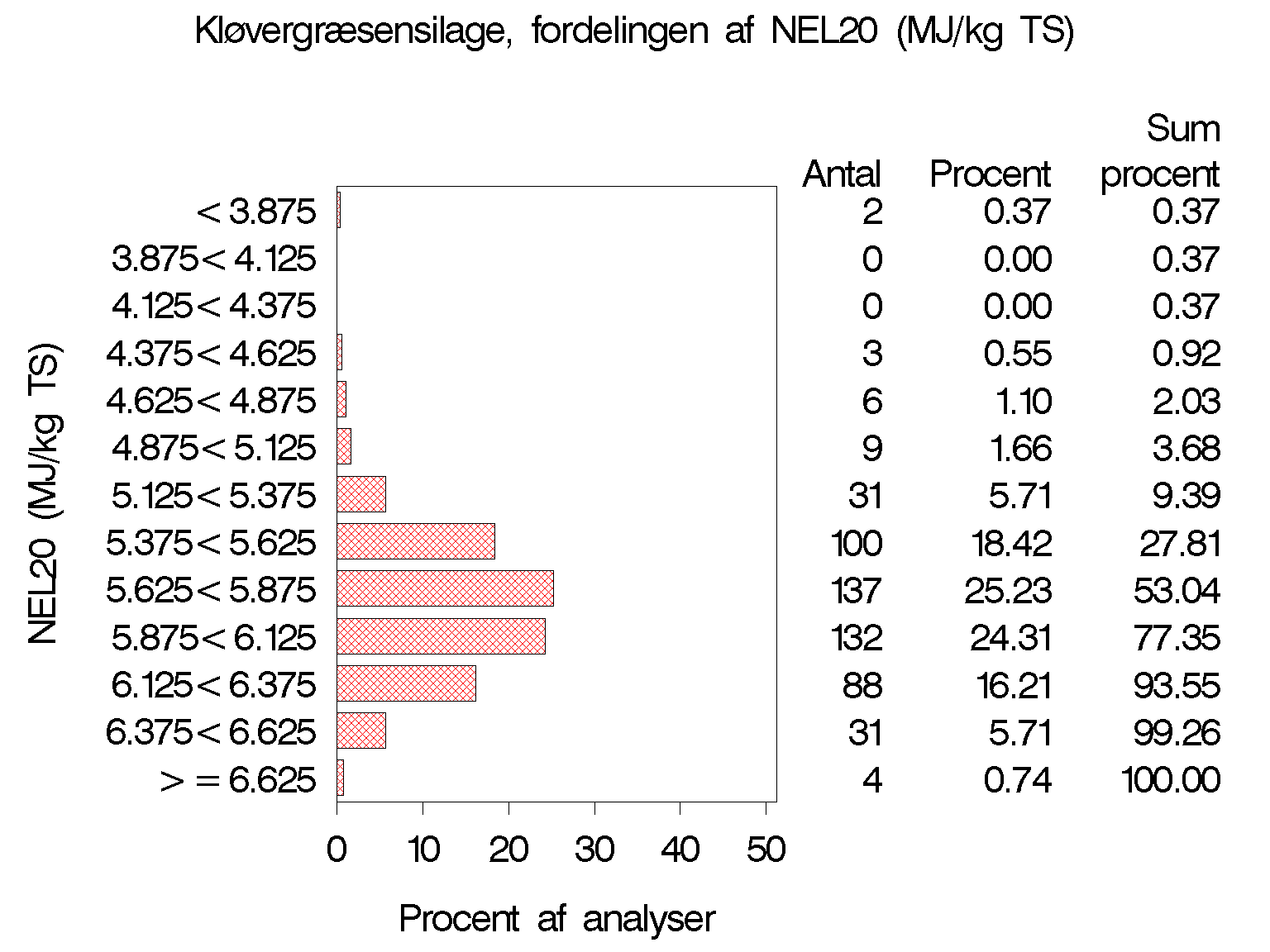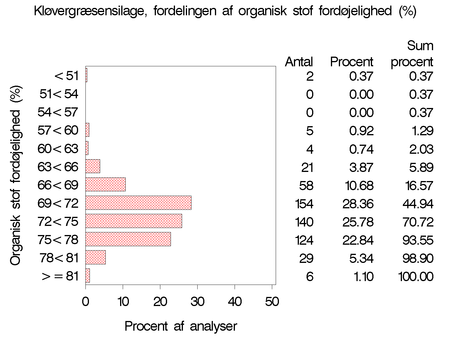 Denne tabel viser foderværdien af de analyserede prøver af kløvergræsensilage