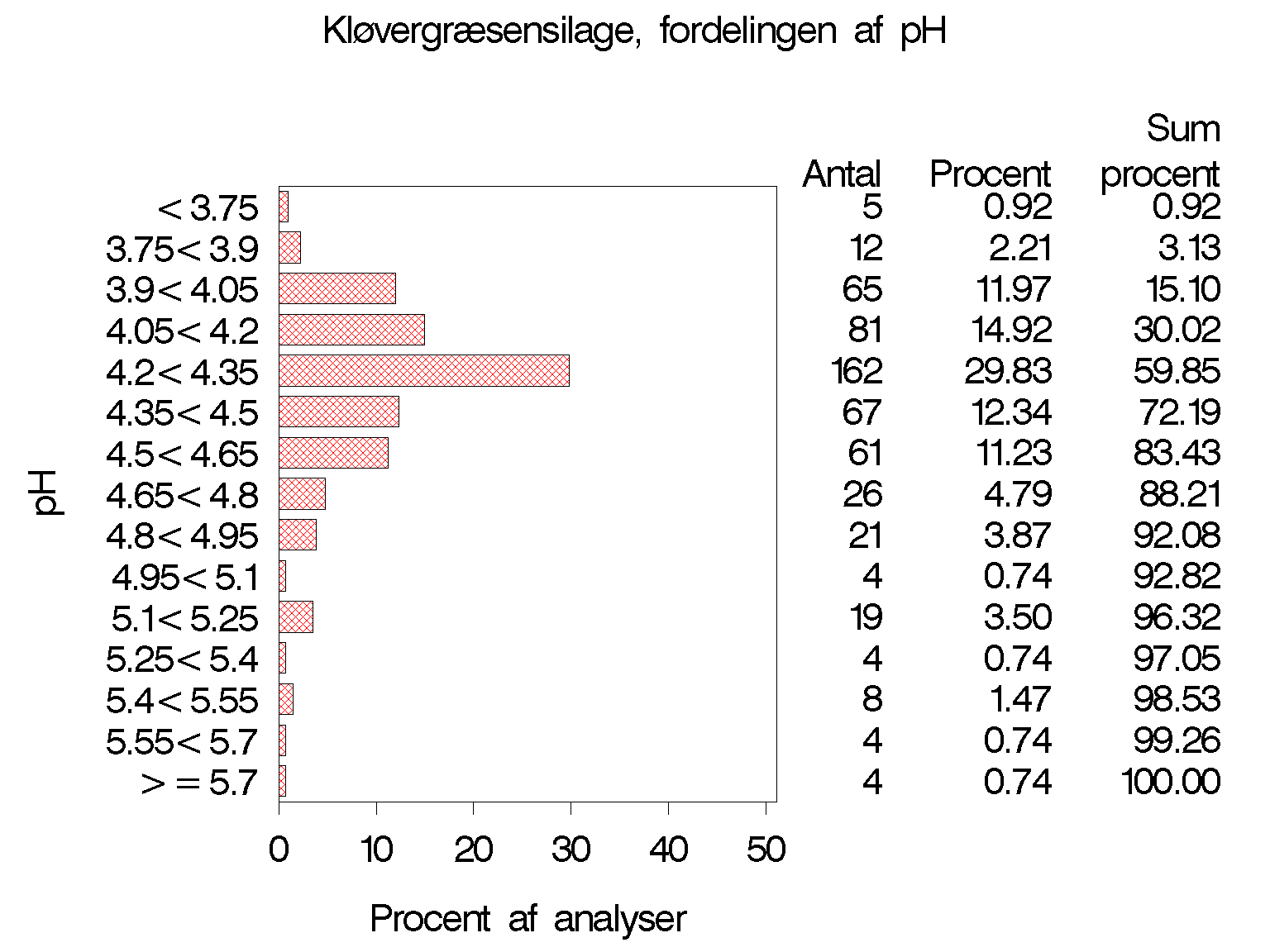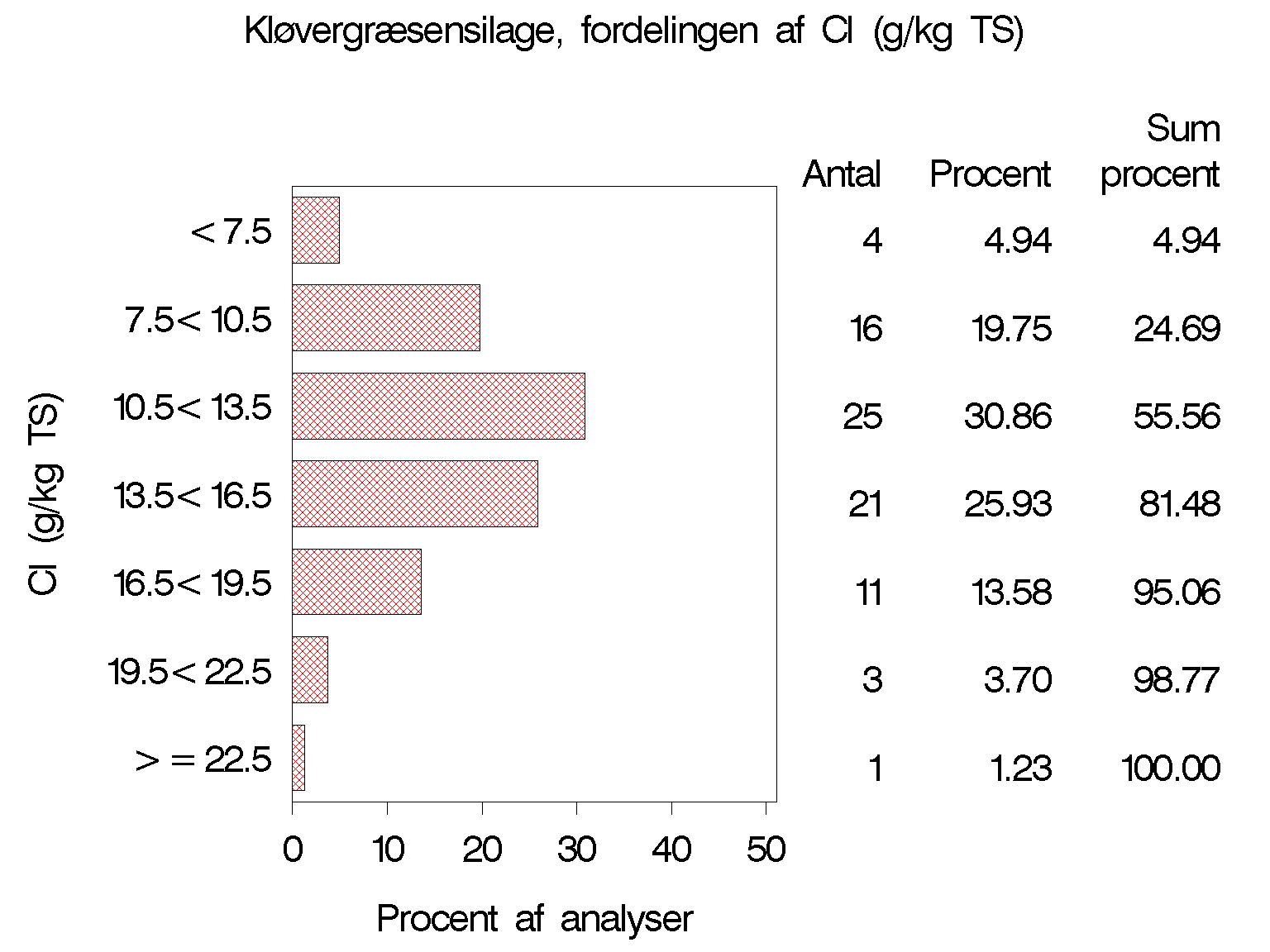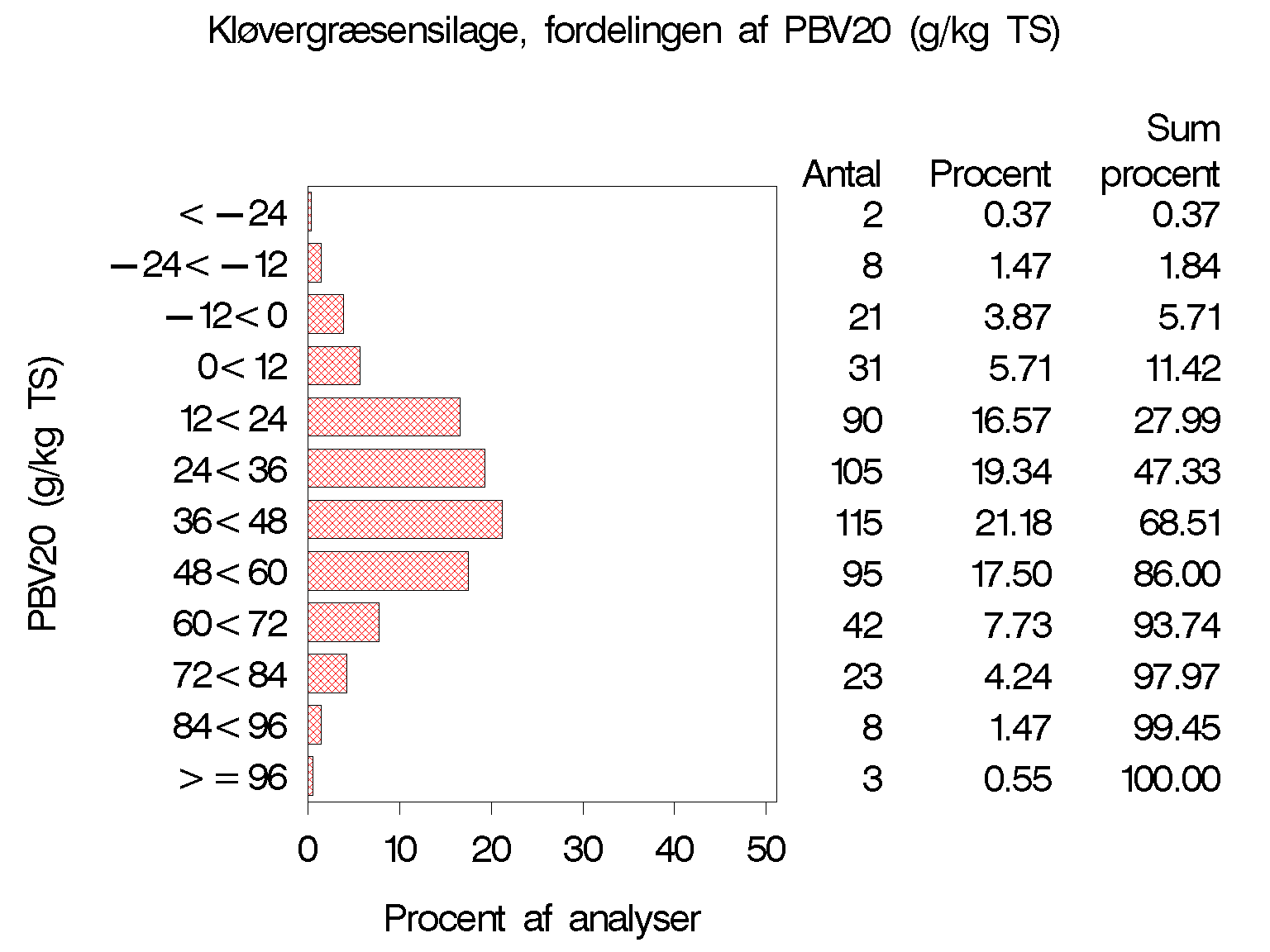 Denne tabel viser foderværdien af de analyserede prøver af kløvergræsensilage