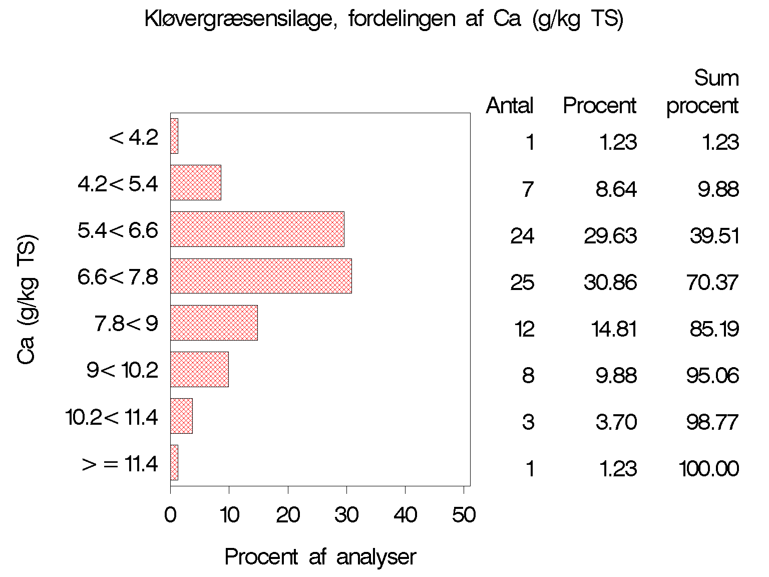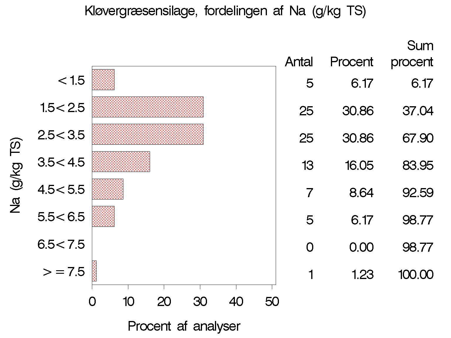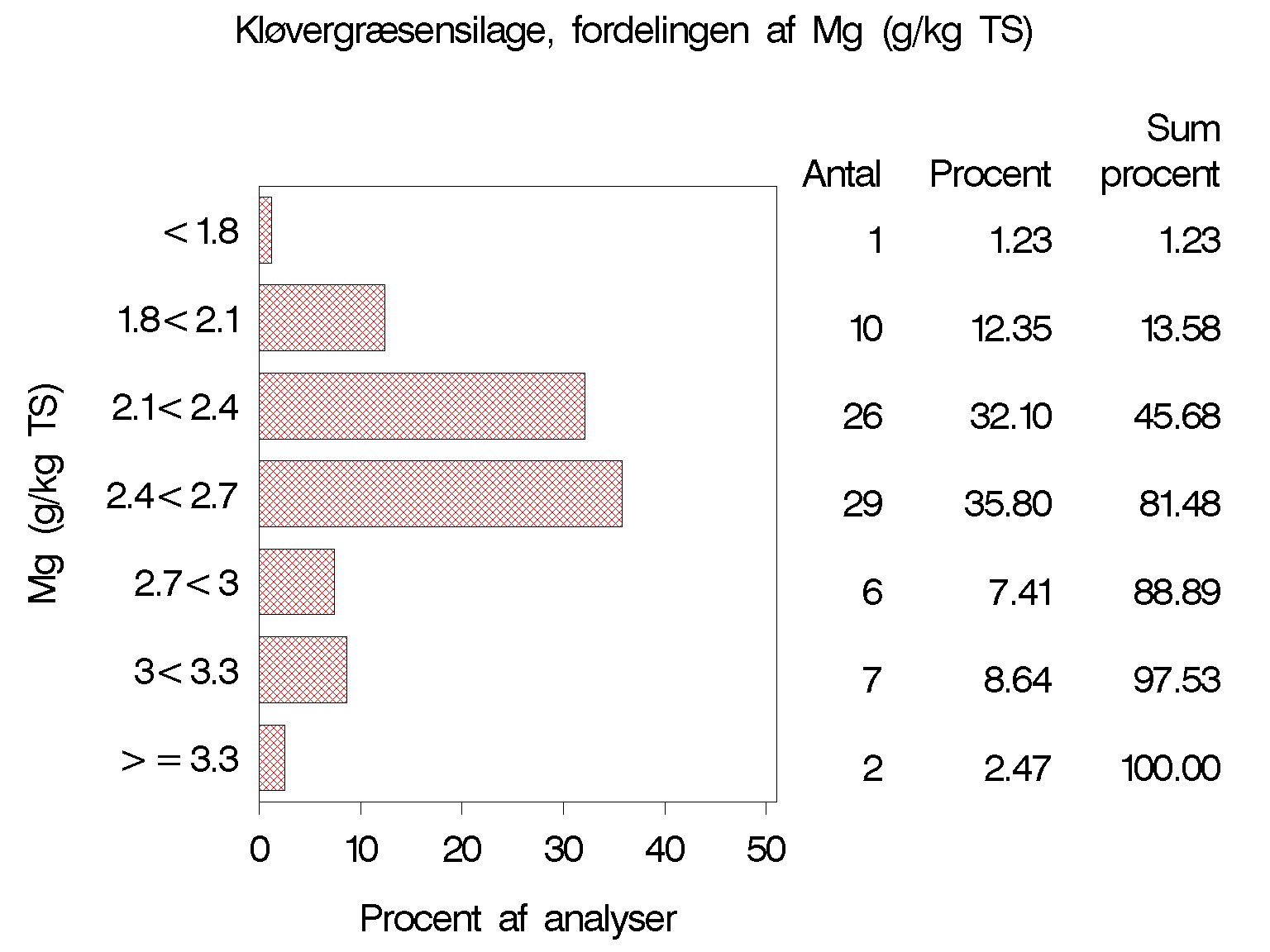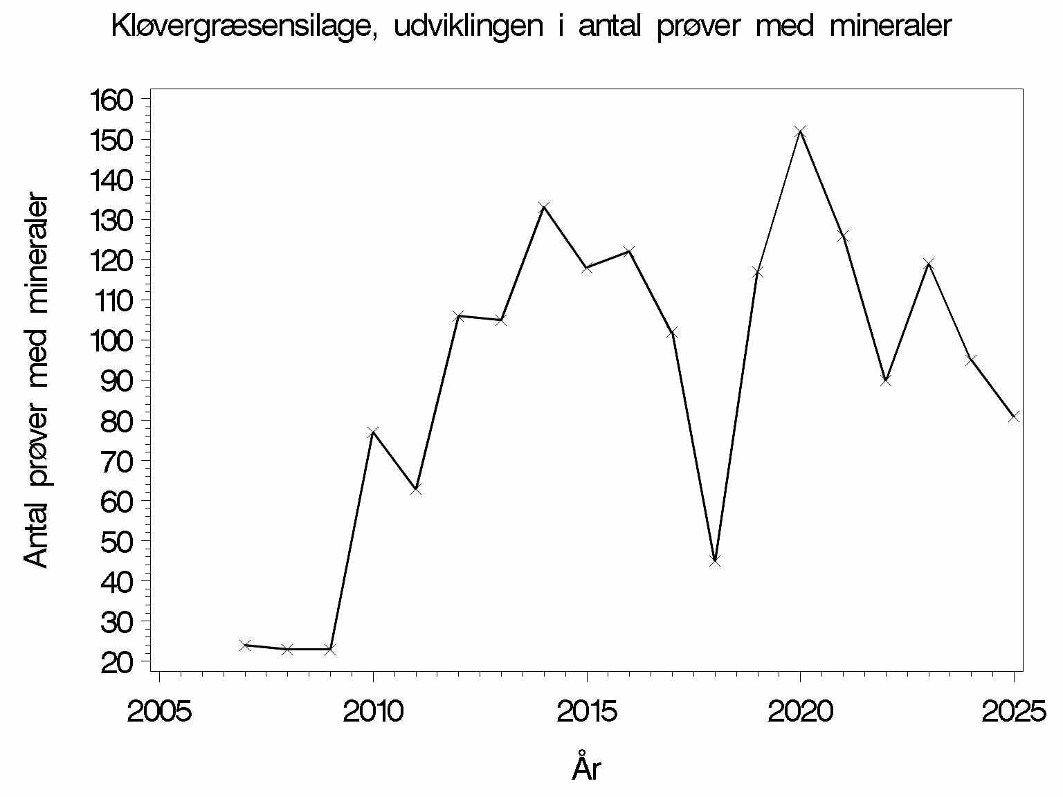 Denne tabel viser mineralindholdet af de analyserede prøver af kløvergræsensilage