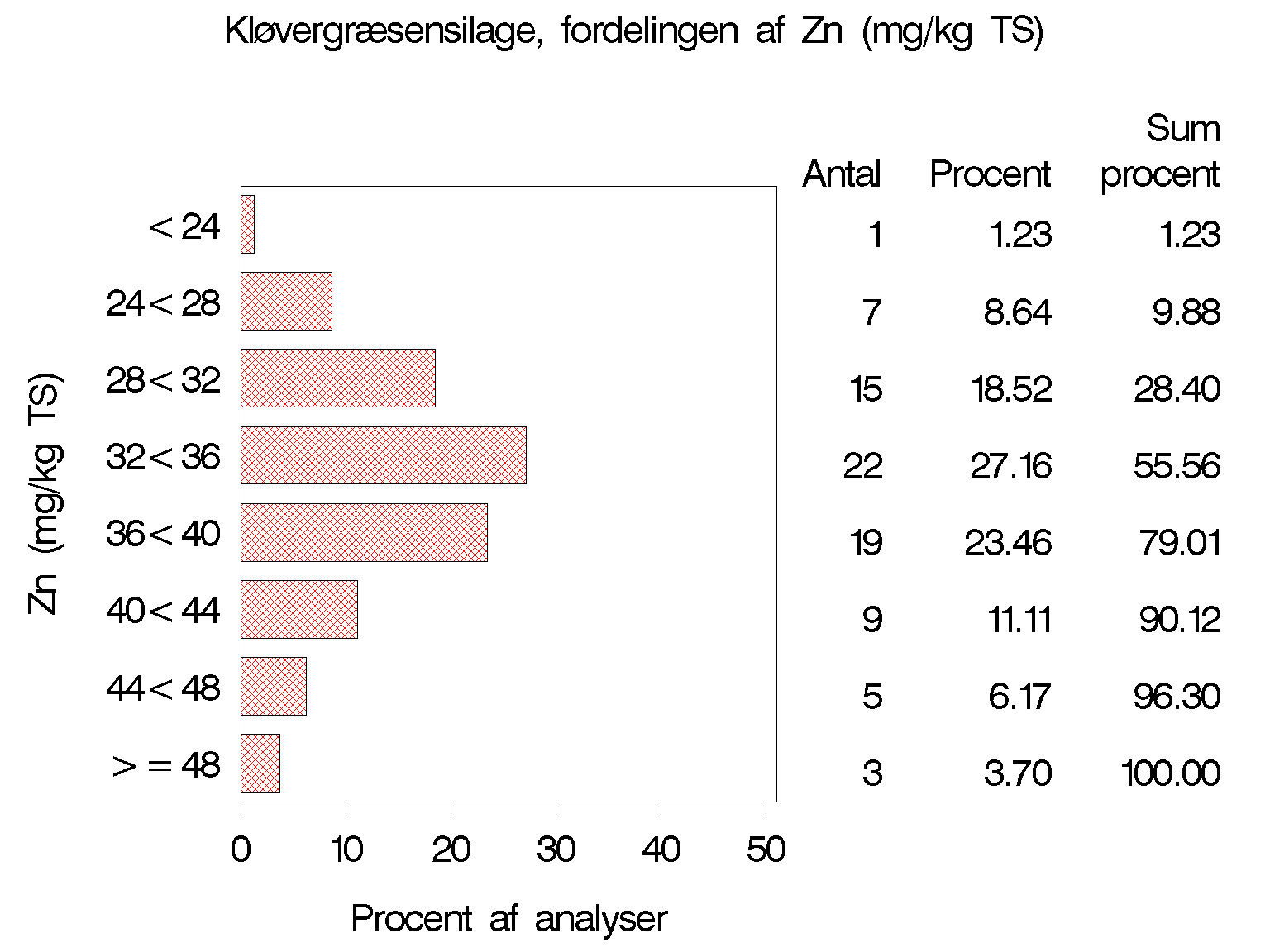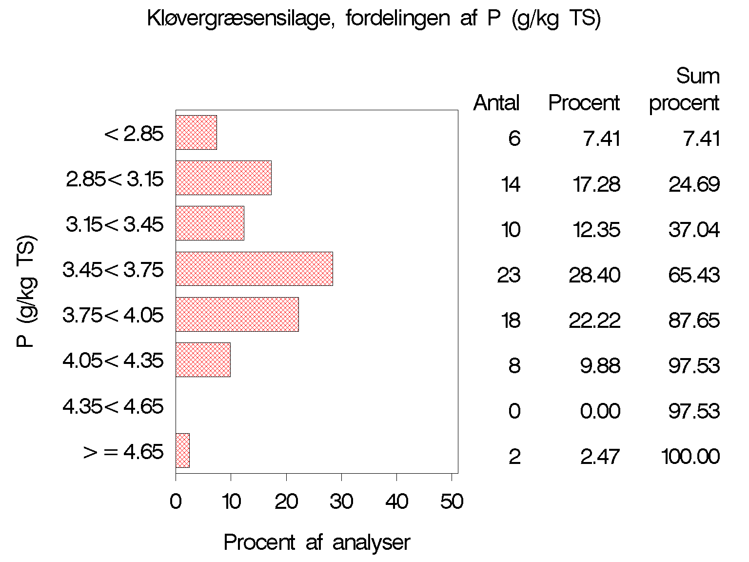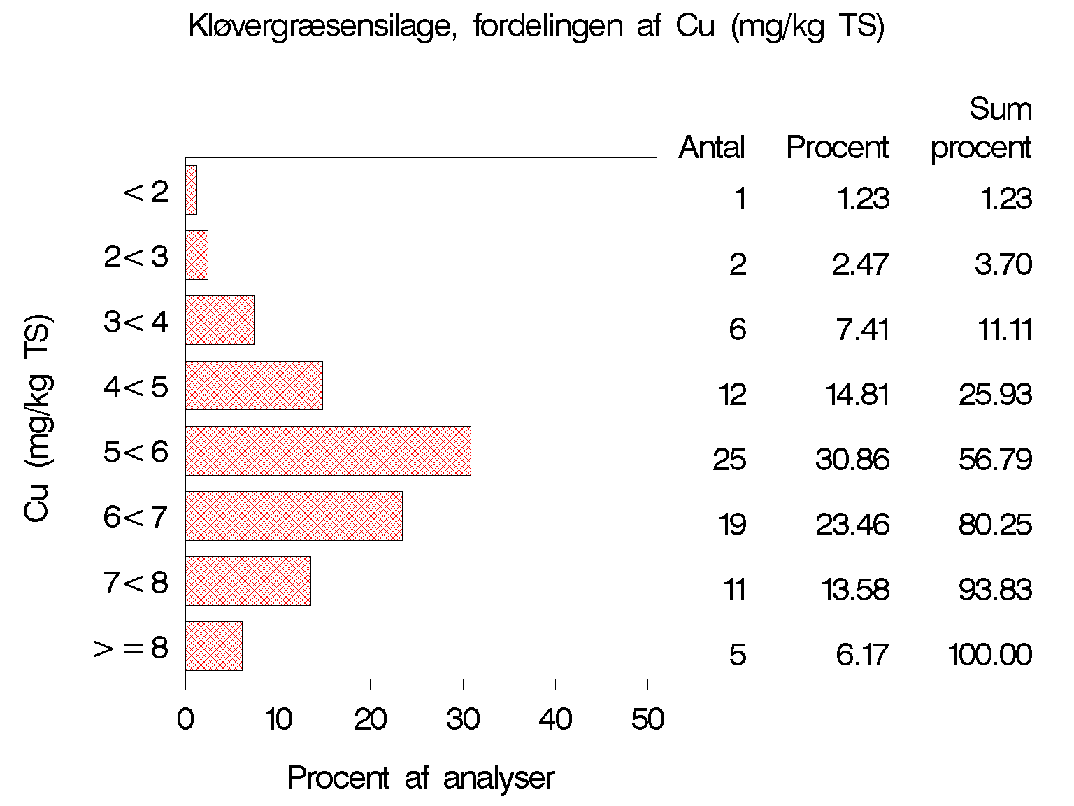 Denne tabel viser mineralindholdet af de analyserede prøver af kløvergræsensilage