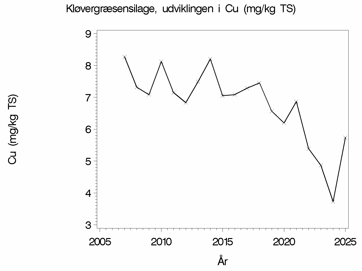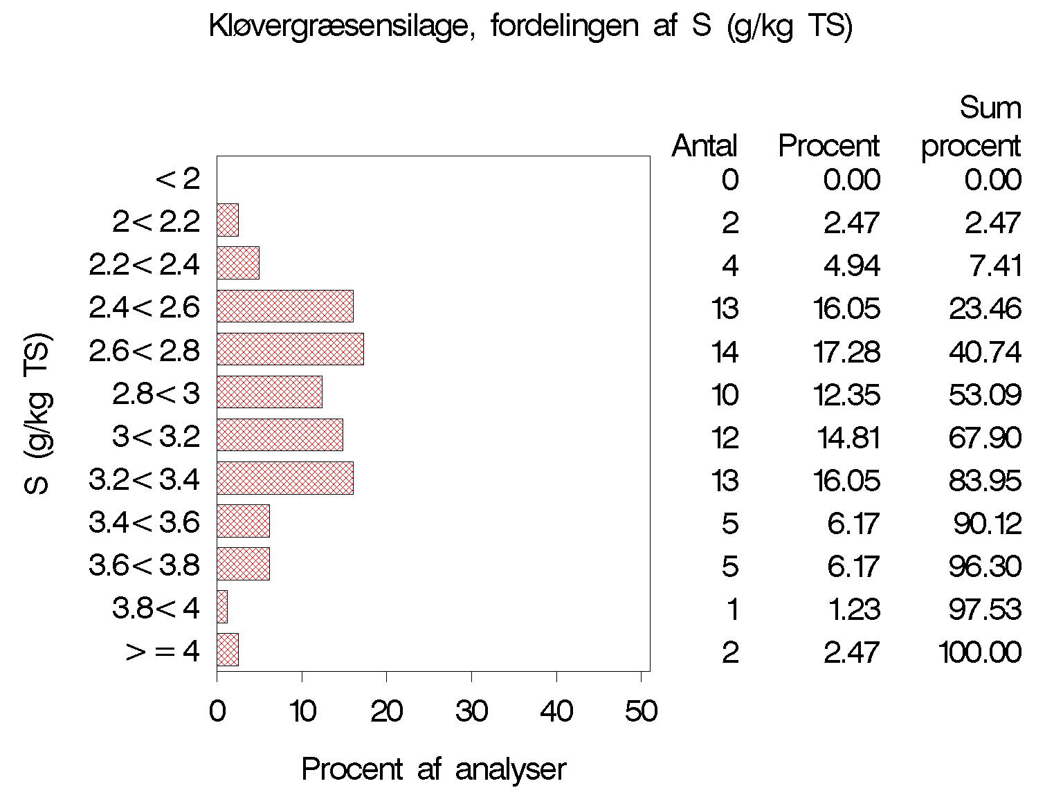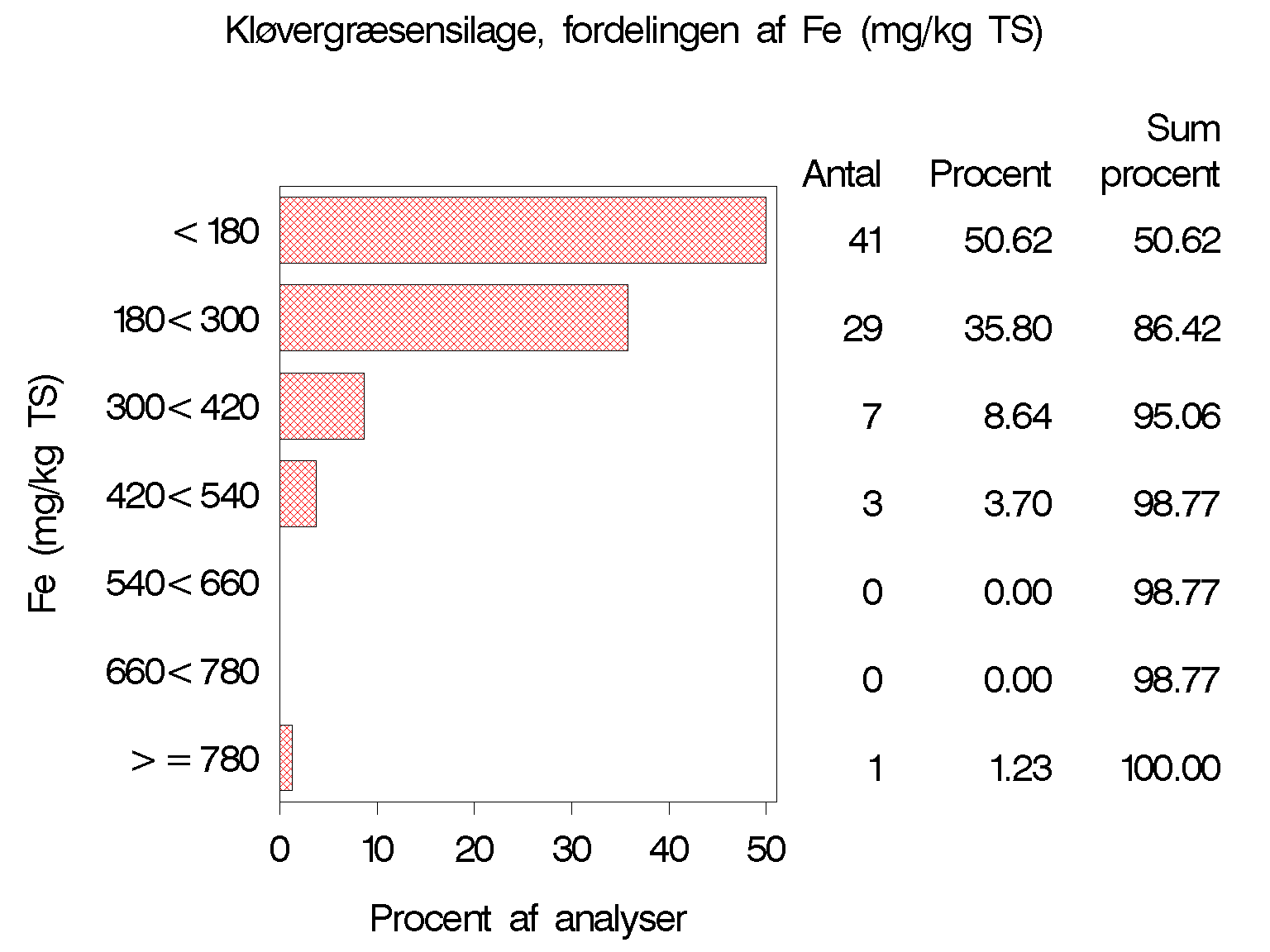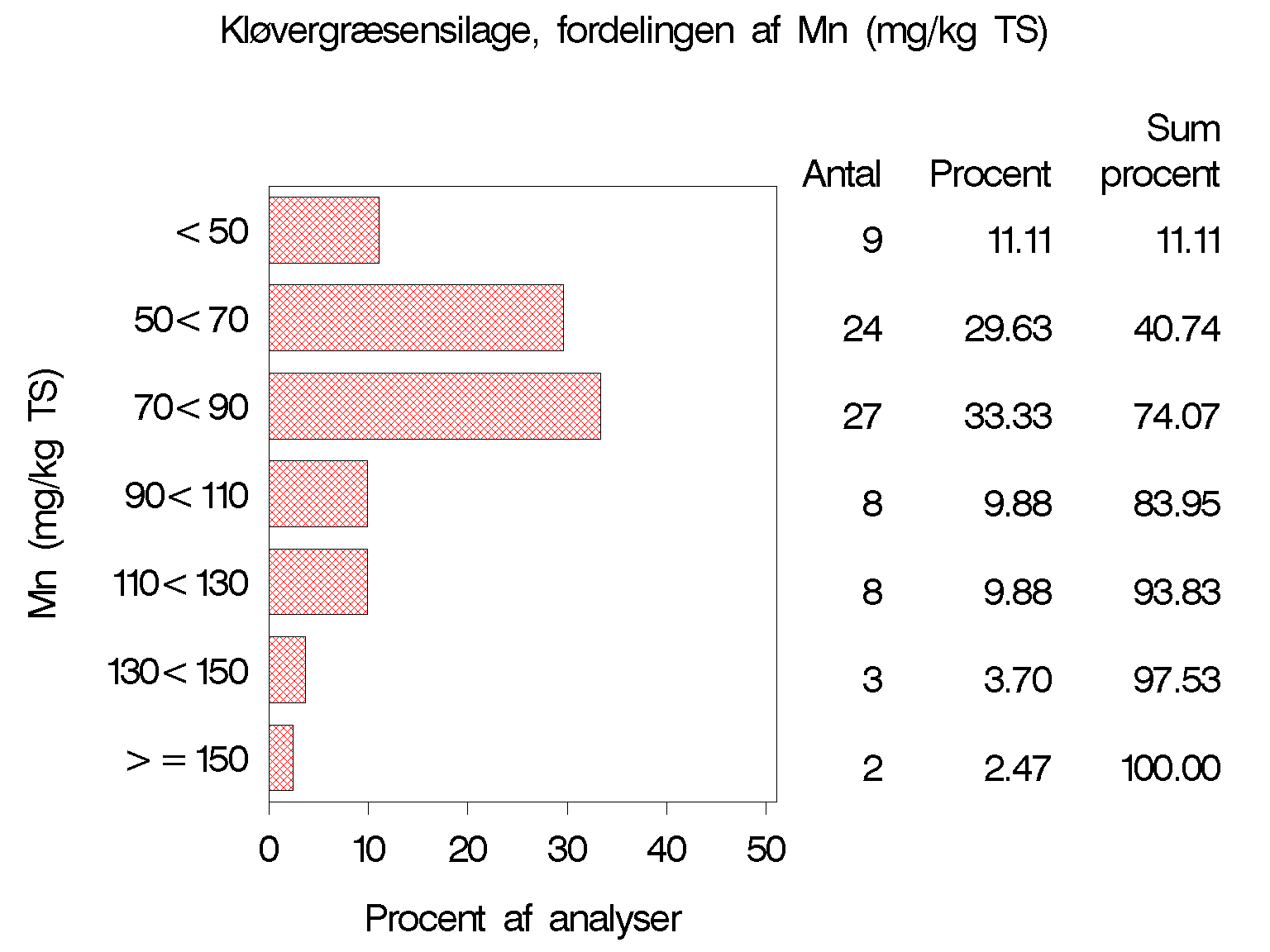 Denne tabel viser mineralindholdet af de analyserede prøver af kløvergræsensilage