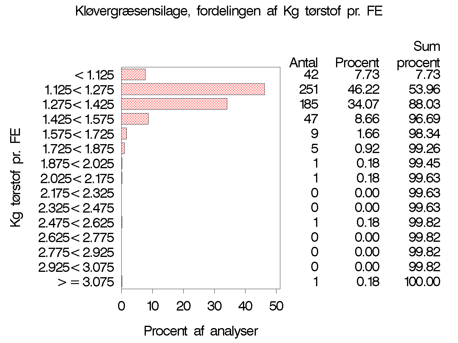 | Kg tørstof pr. FE | 1,29 | 1,19 | 1,20 | 1,13 | 1,45 |