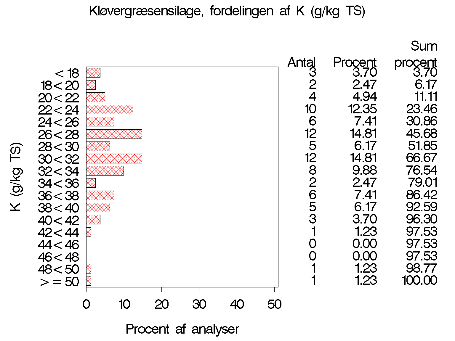 Her kan du se, hvordan prøverne er fordelt i forhold til analyseværdier for nogle af de vigtigste næringsstofparametre.