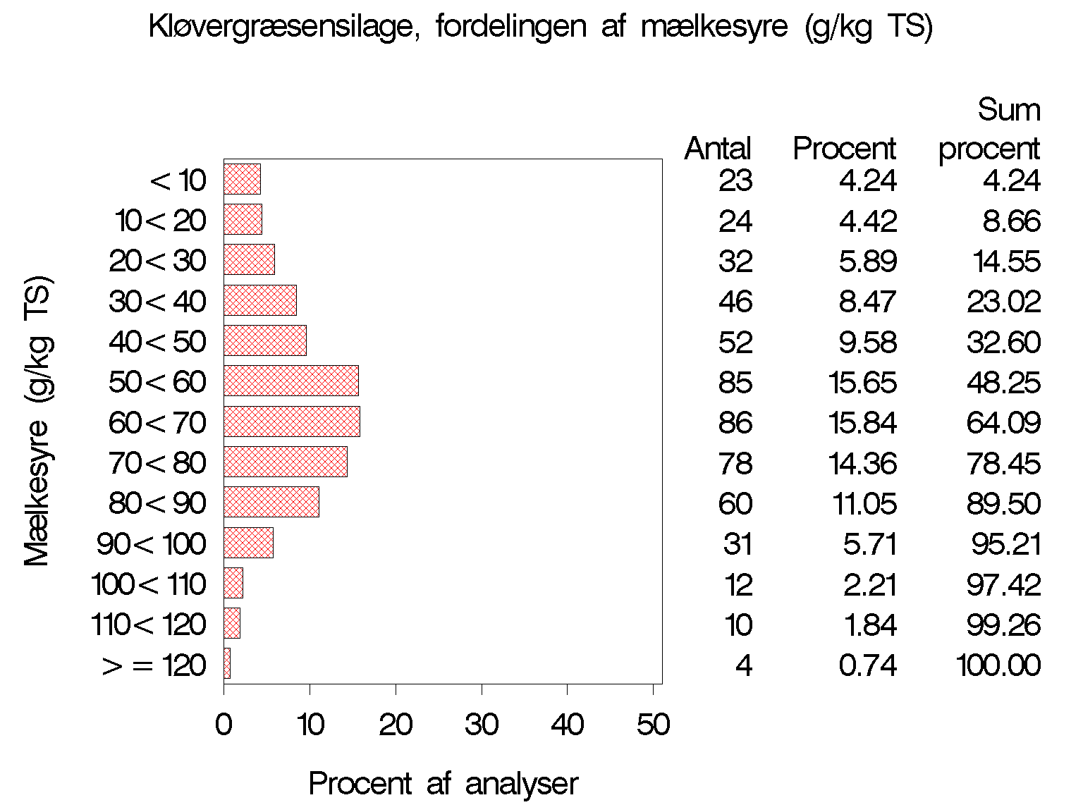 | Mælkesyre (g/kg TS) | 59 | 56 | 62 | 23 | 90 |