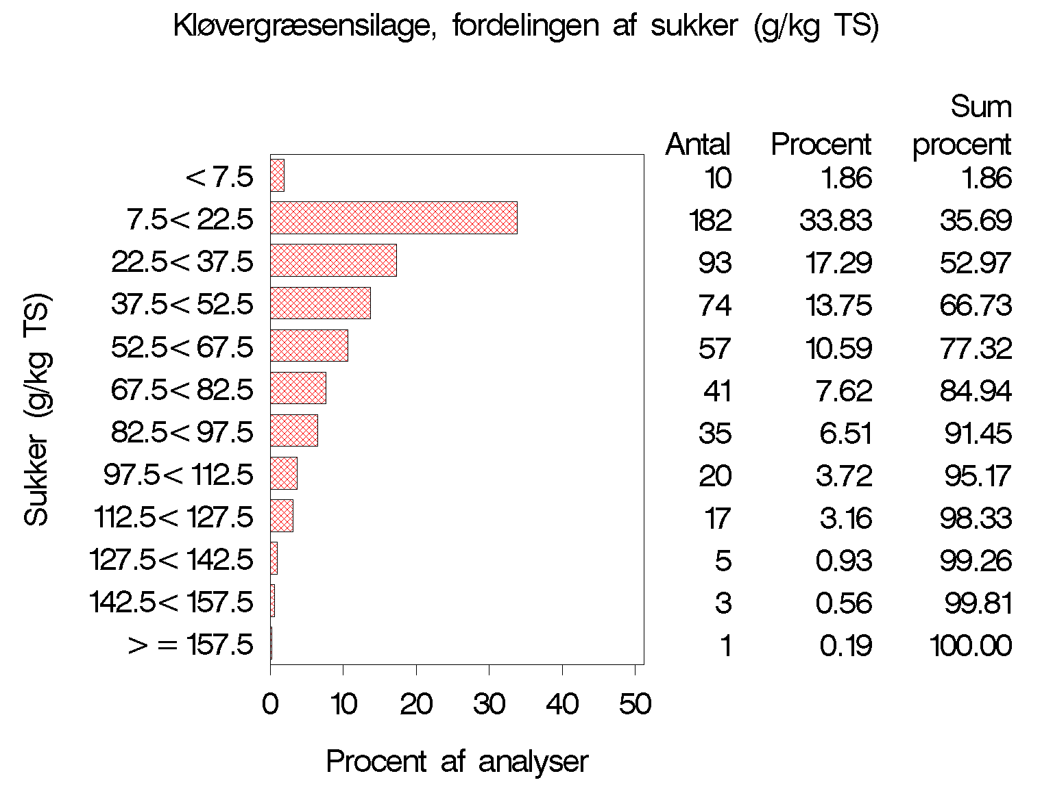 | Sukker (g/kg TS) | 44 | 67 | 54 | 10 | 95 |