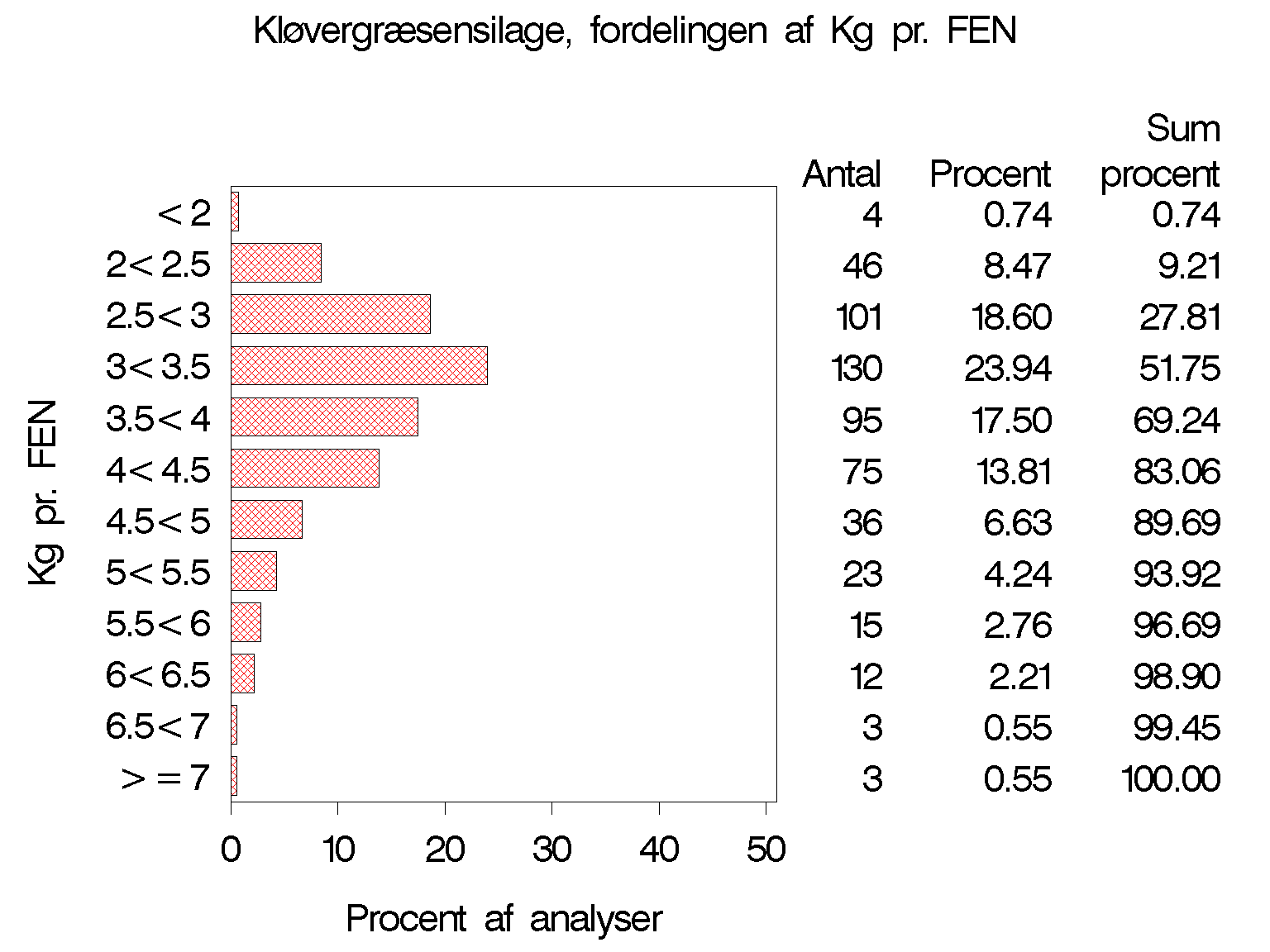 | Kg pr. FEN | 3,64 | 3,26 | 3,47 | 2,52 | 5,01 |