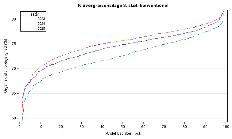 fra det seneste høstår (2025), året før og for de seneste 3 afsluttede høstår (2024, 2023 og 2022).