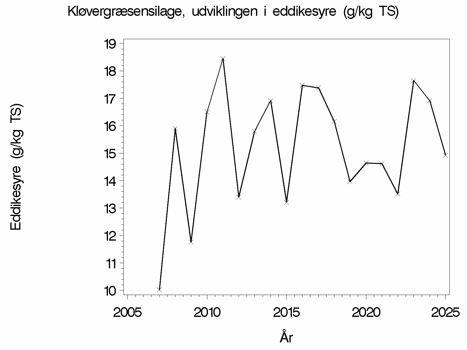| Eddikesyre (g/kg TS) | 17 | 16 | 15 | 16 | 14 |