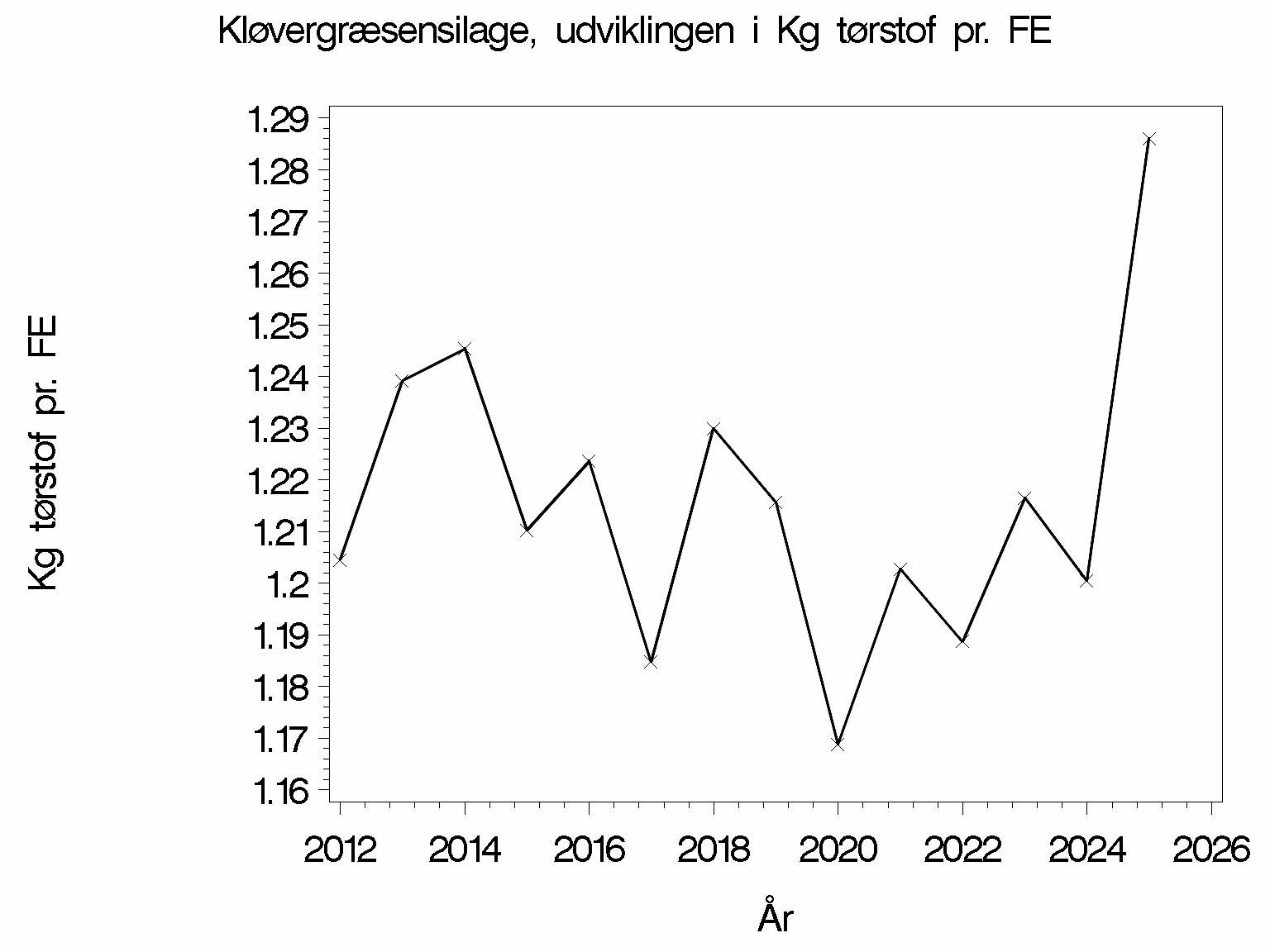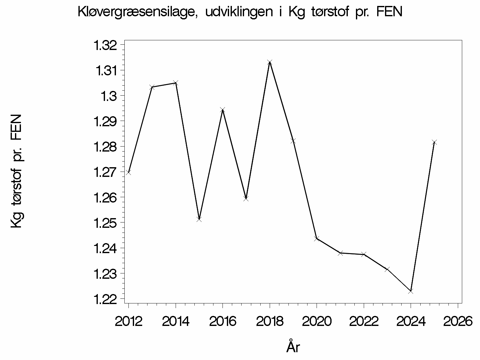 | Kg tørstof pr. FEN | 1,33 | 1,26 | 1,29 | 1,29 | 1,28 |