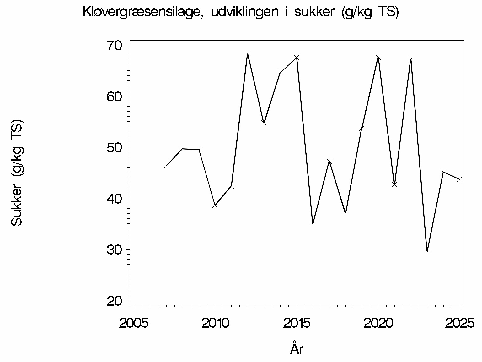 | Sukker (g/kg TS) | 42 | 36 | 44 | 42 | 47 |