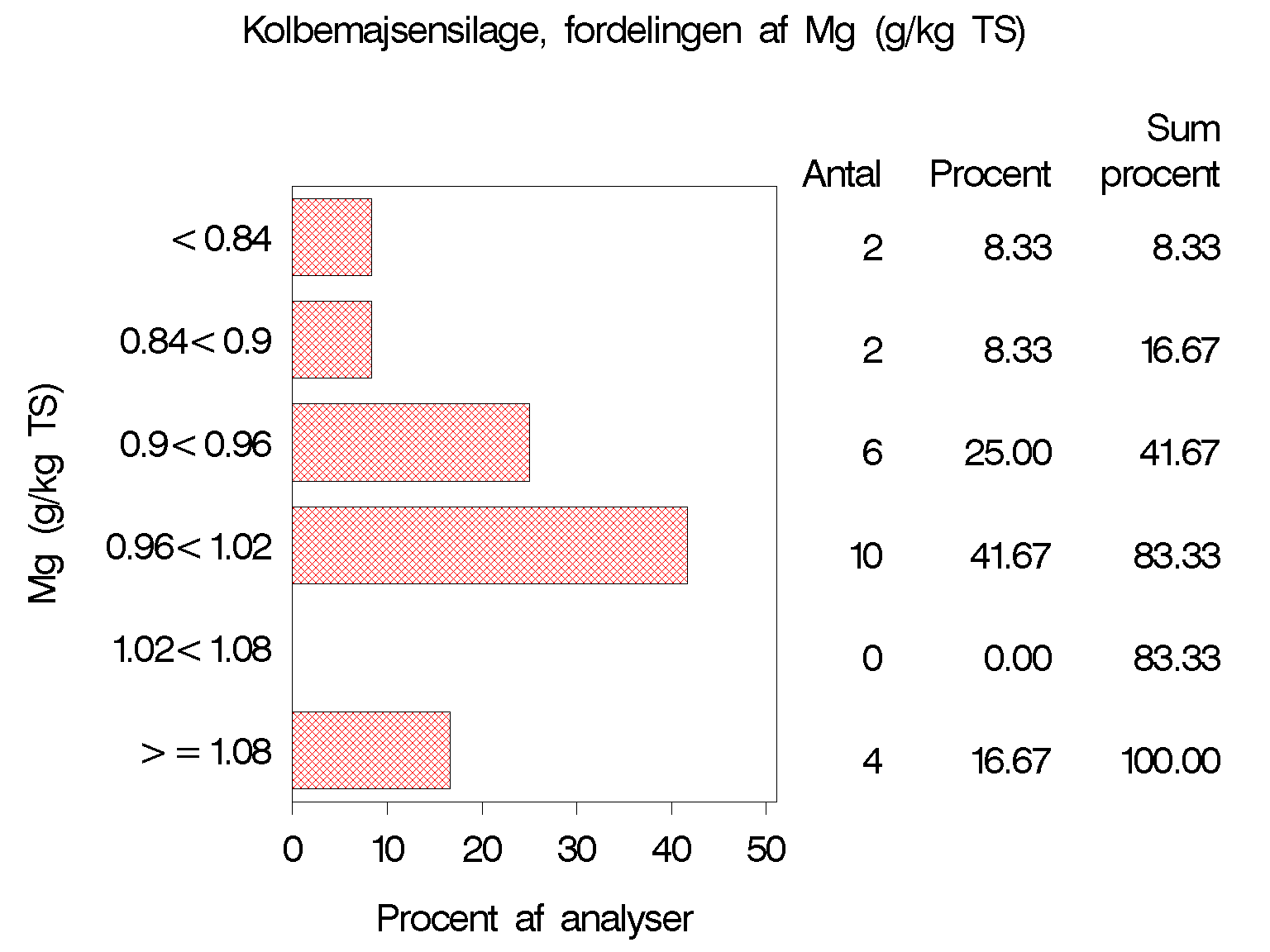 Denne tabel viser mineralindholdet af de analyserede prøver af kolbemajsensilage