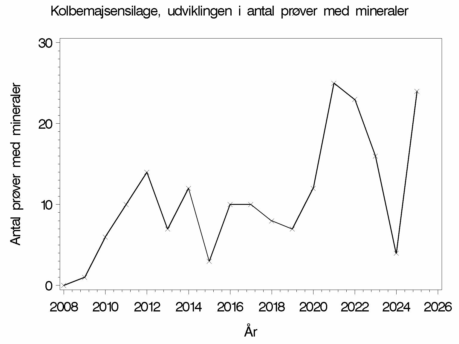 | Antal prøver med mineraler | 24 | 23 | 63 | ||