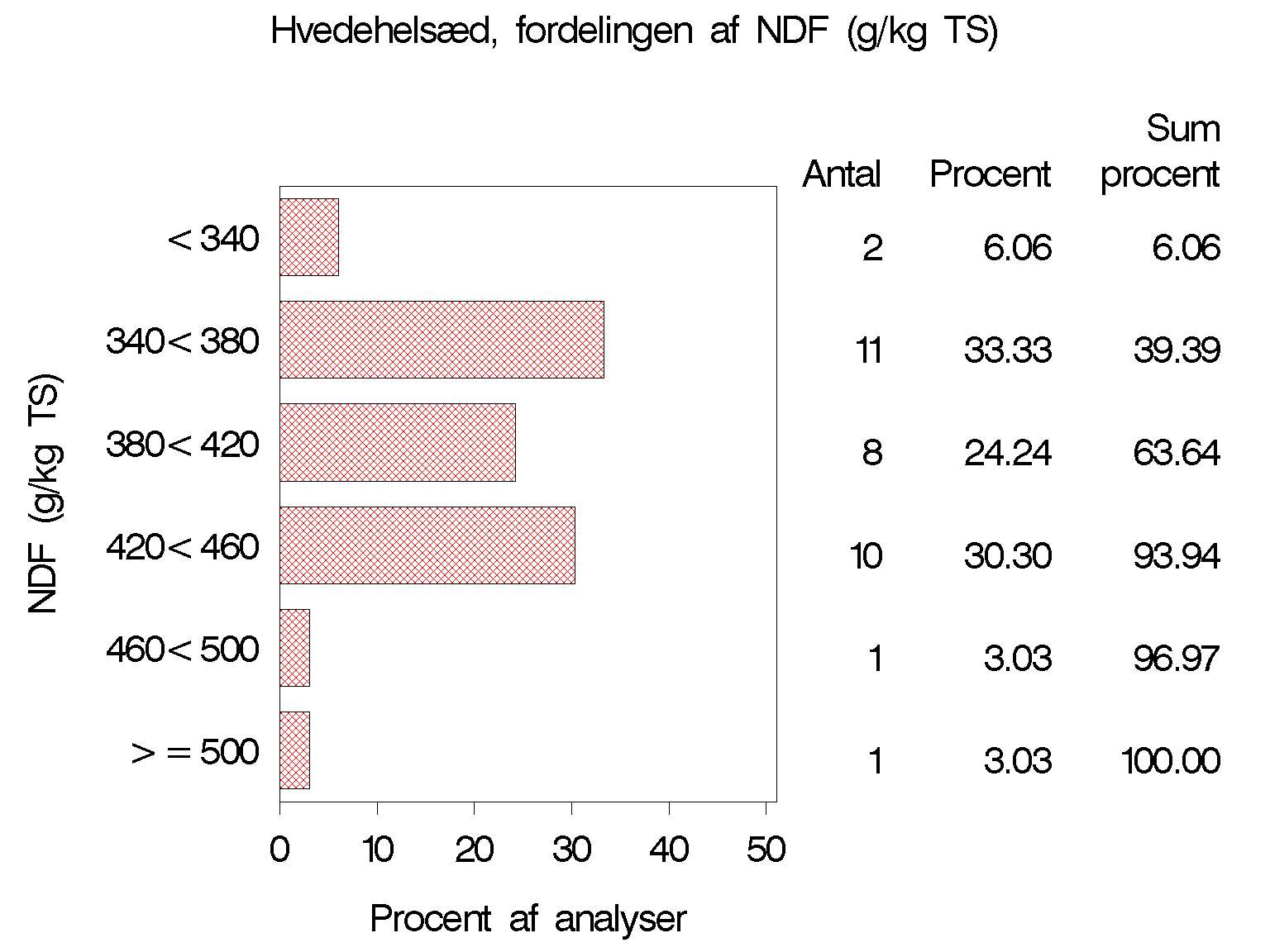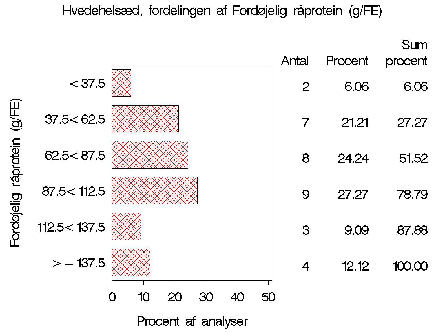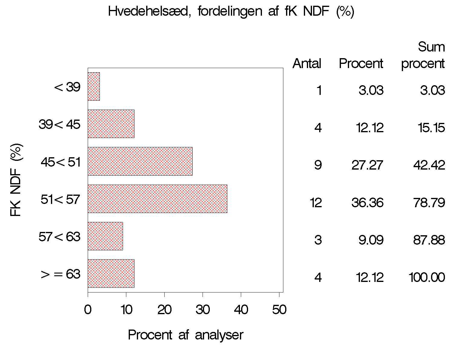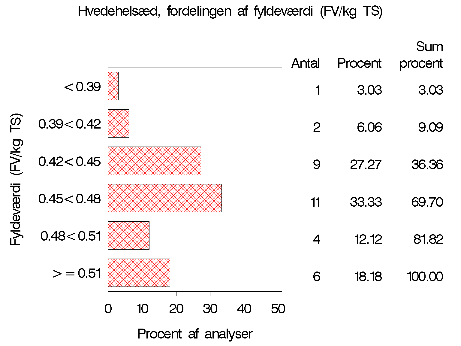 Denne tabel viser foderværdien af de analyserede prøver af hvedehelsæd