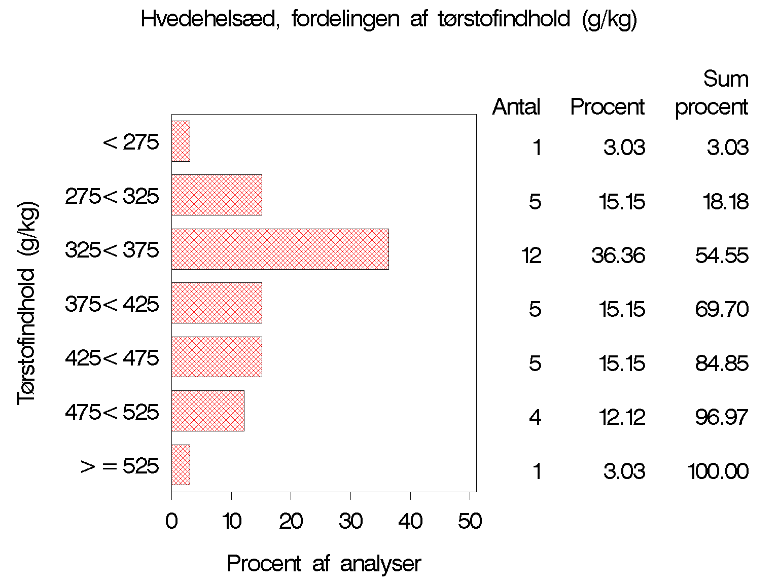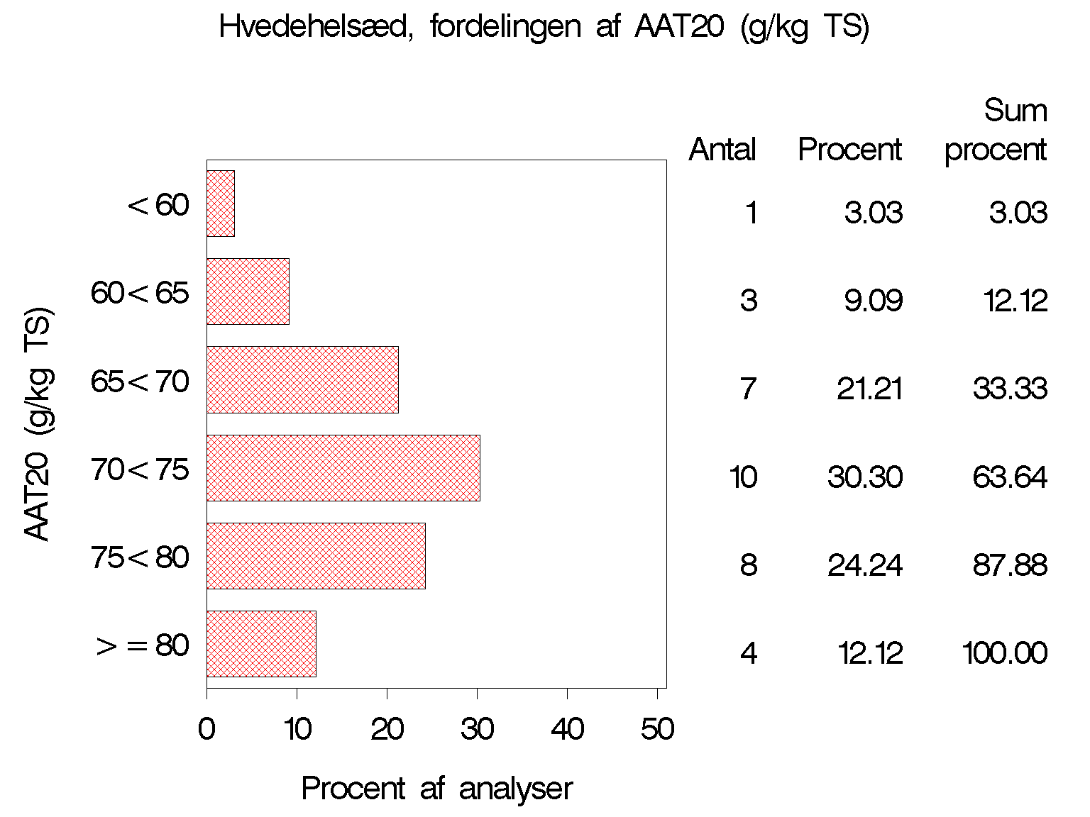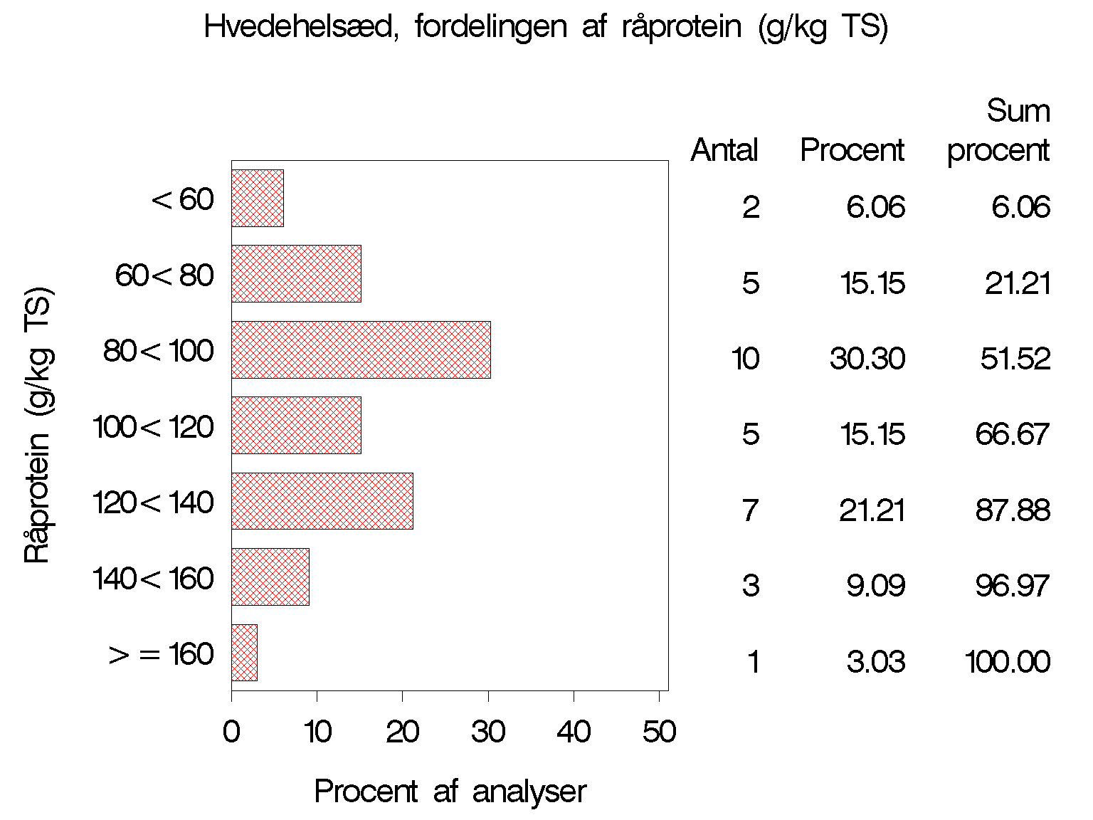 Denne tabel viser foderværdien af de analyserede prøver af hvedehelsæd