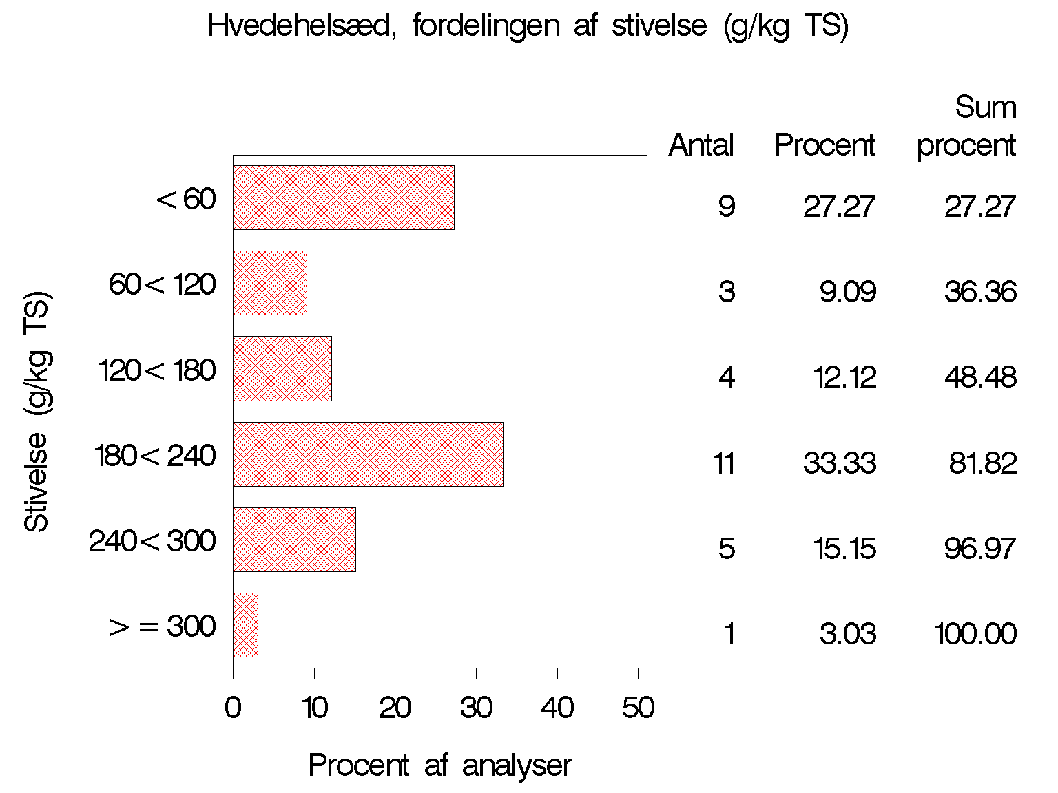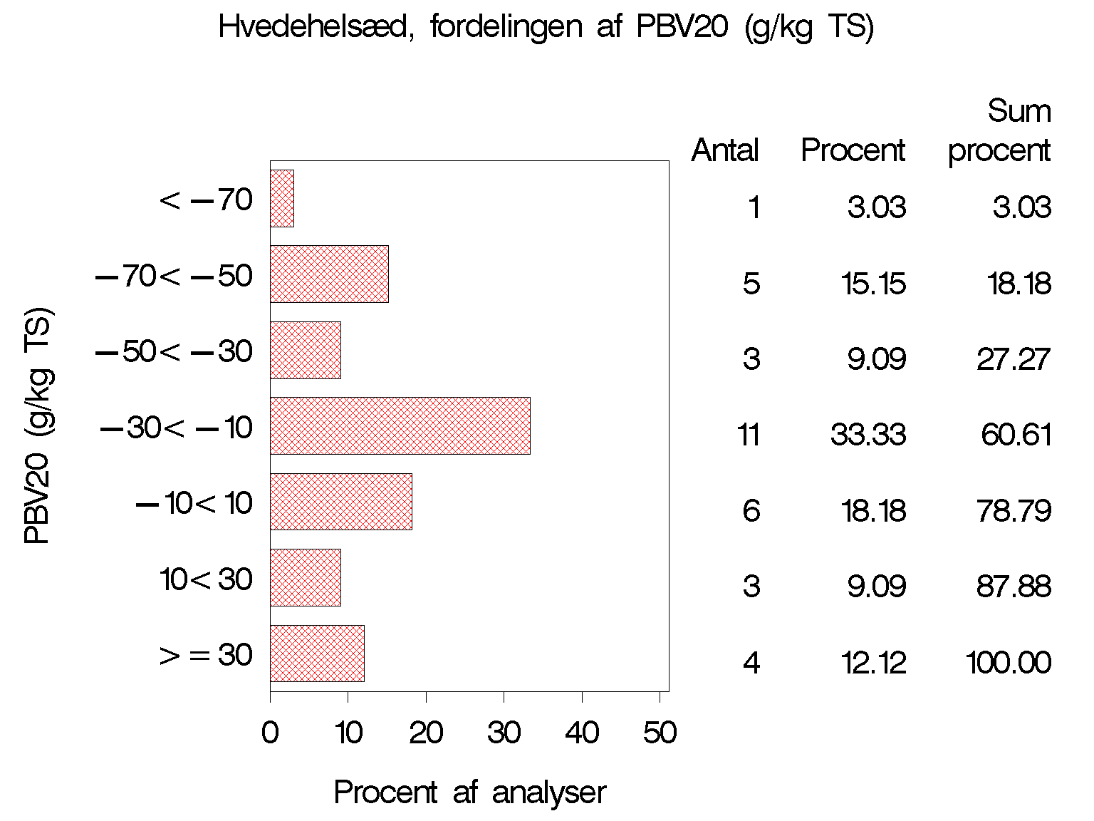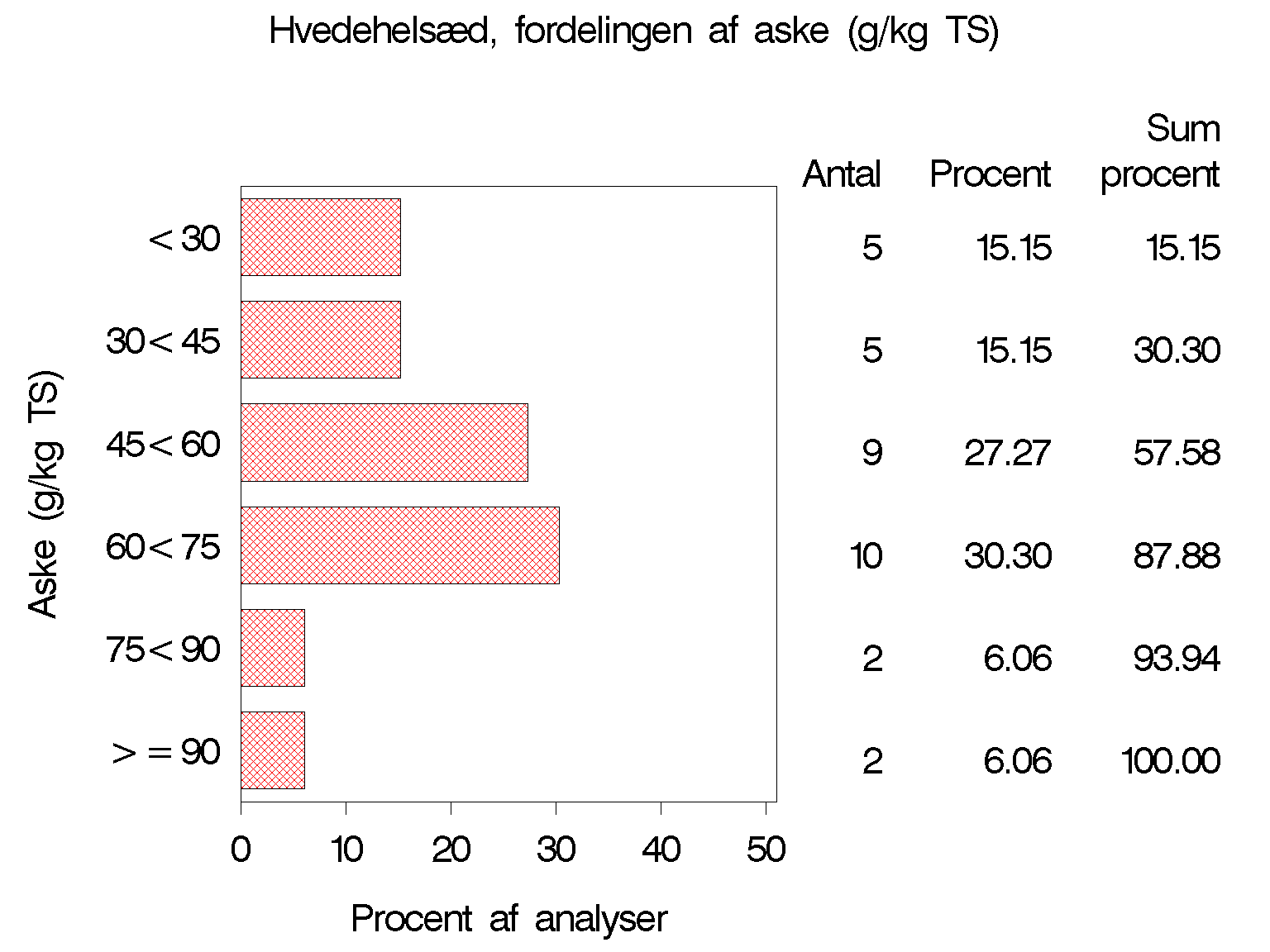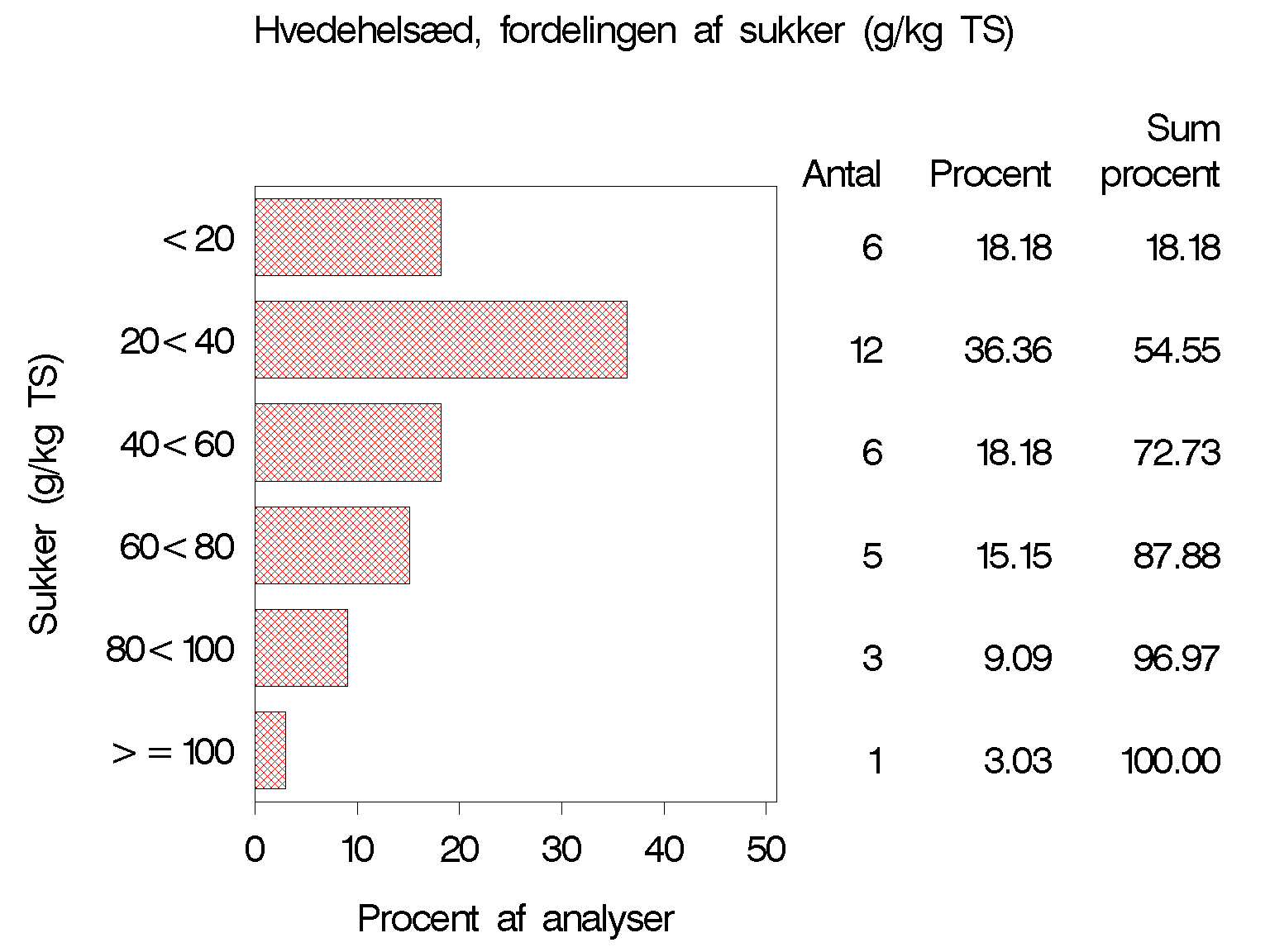 Denne tabel viser foderværdien af de analyserede prøver af hvedehelsæd