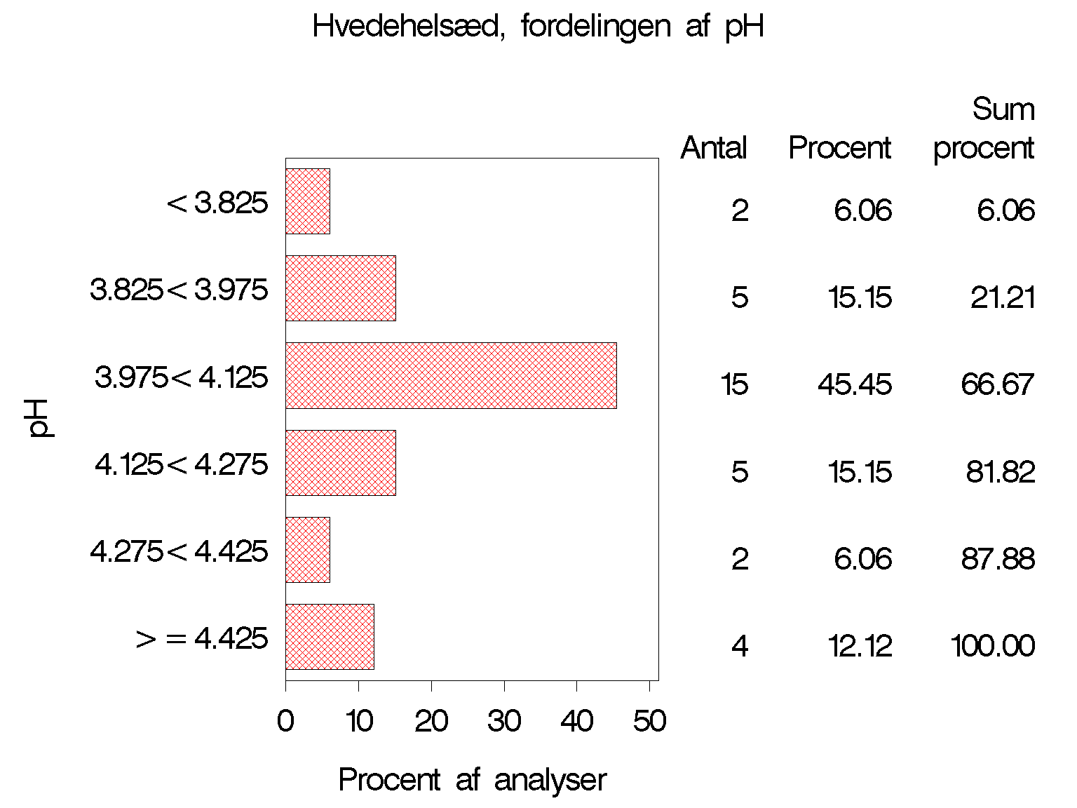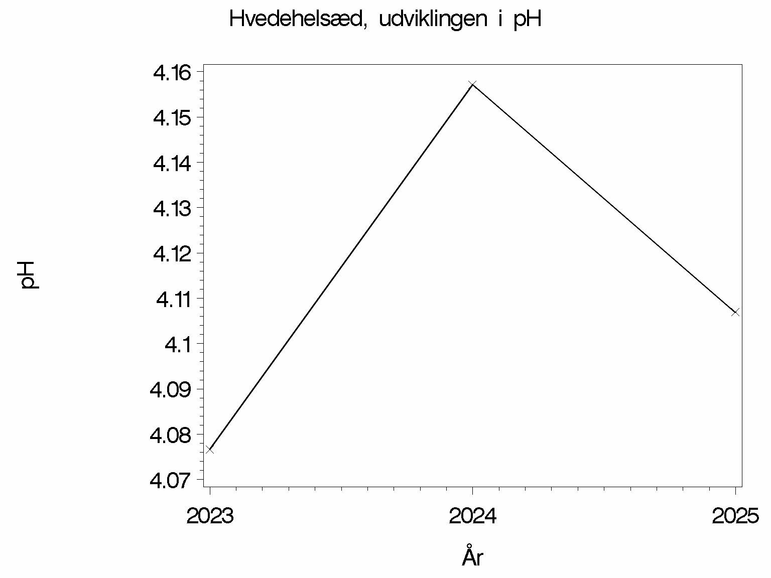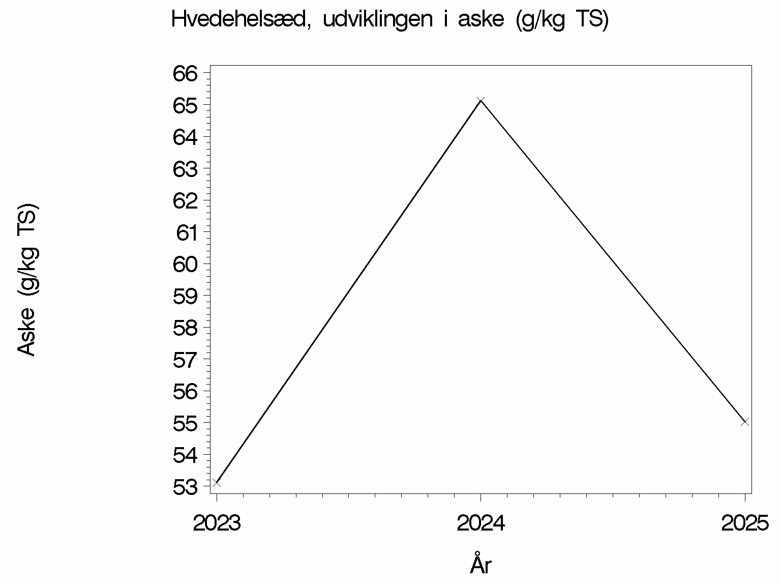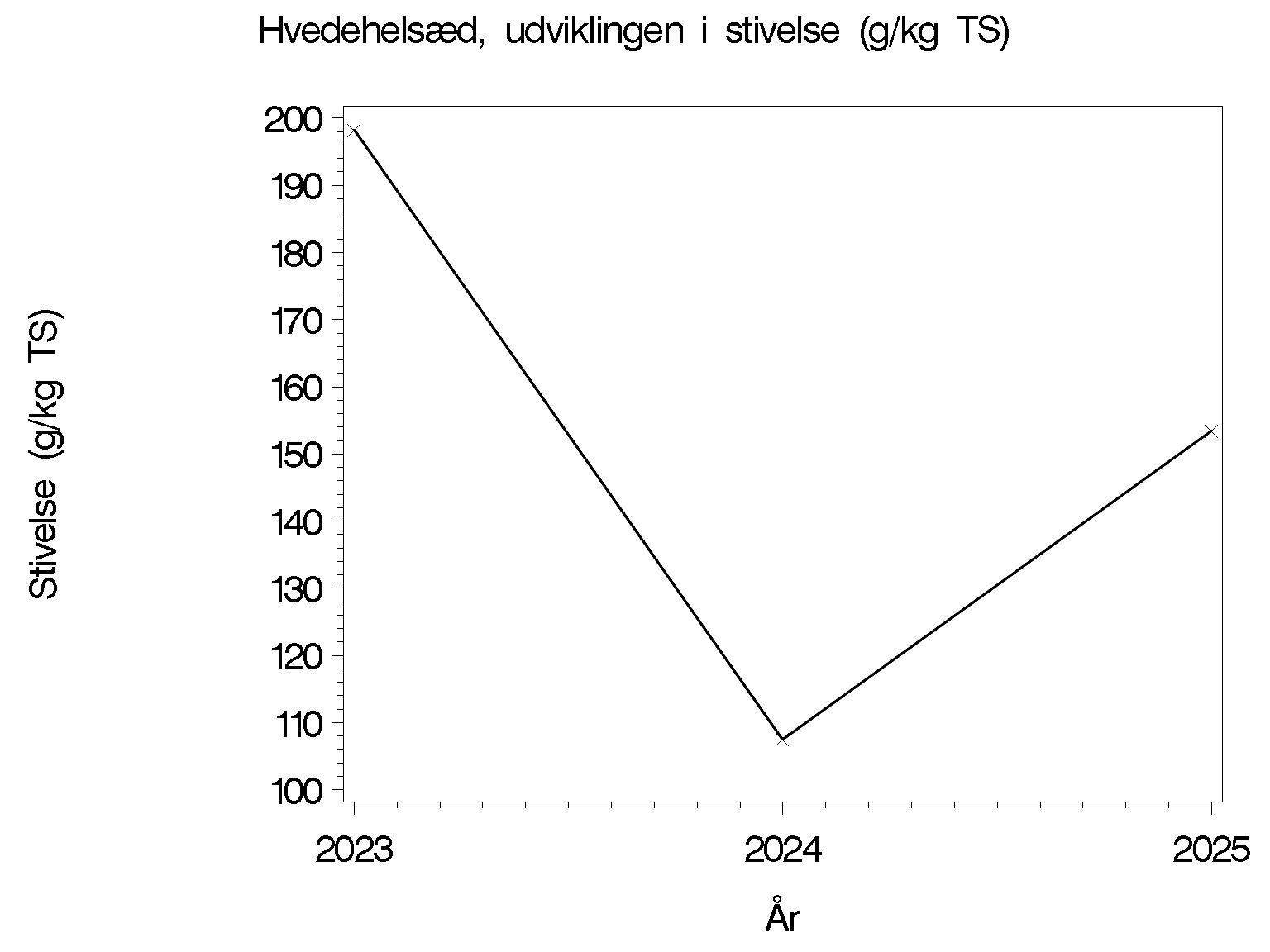 Hvis du klikker på på de enkelte analyserede parametre, f.eks. tørstof, så kommer du ind og ser en figur over udviklingen i denne parametre. Hvis du derimod klikker på tallene 10% nedre, så kan du se en figur, der viser spredningen mellem de analyserede prøver for dette høstår. Klik på det hvide kryds under nederste højre hjørne af figurerne for at komme tilbage igen.