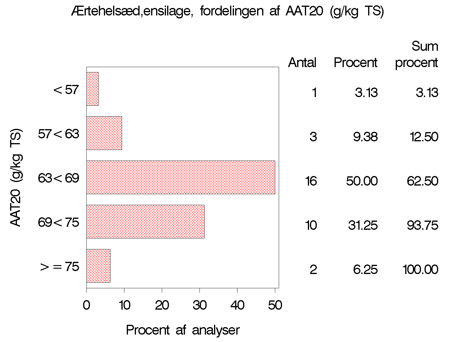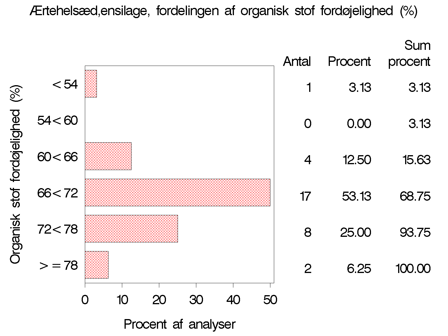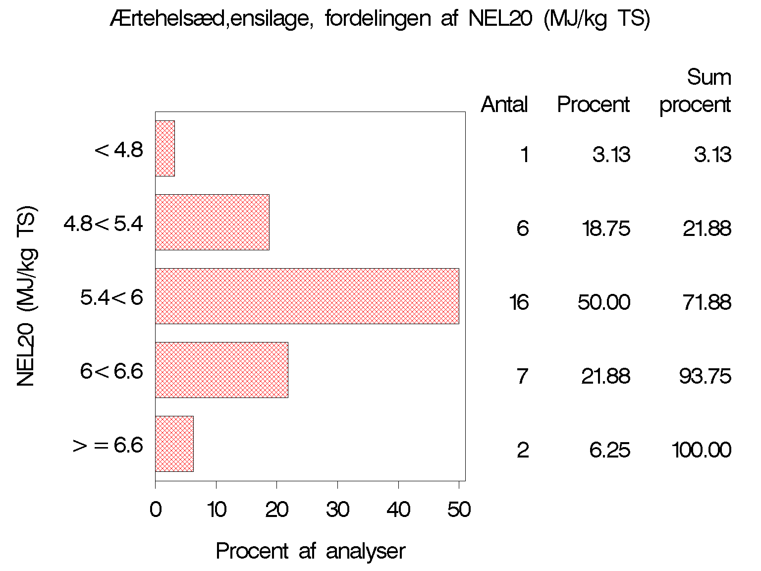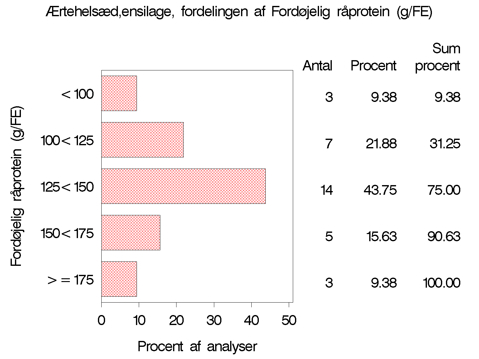 Denne tabel viser foderværdien af de analyserede prøver af ærtehelsæd, ensilage