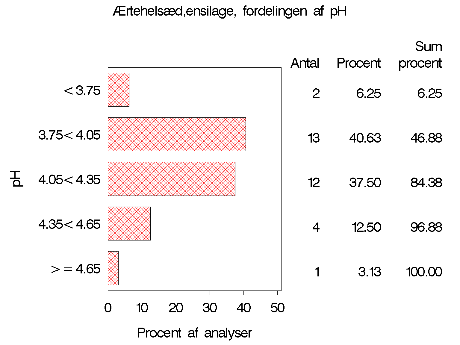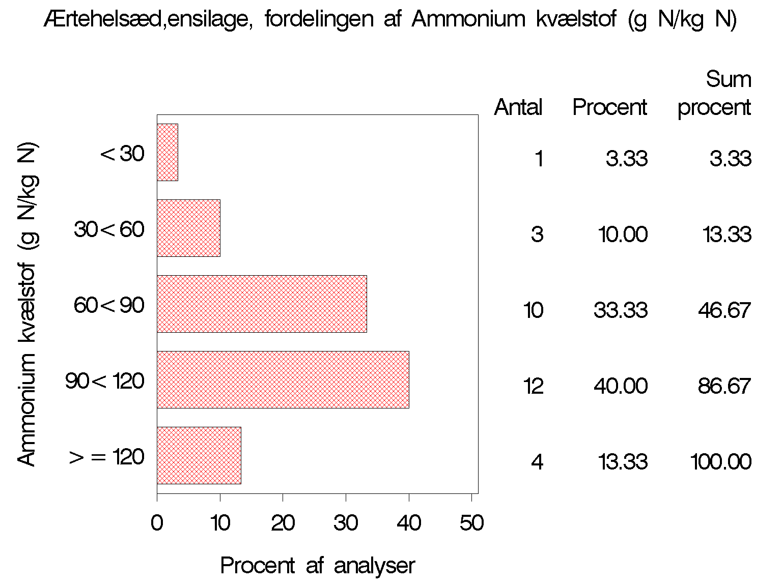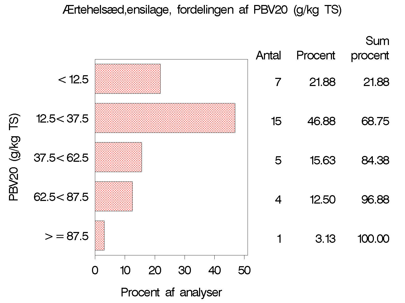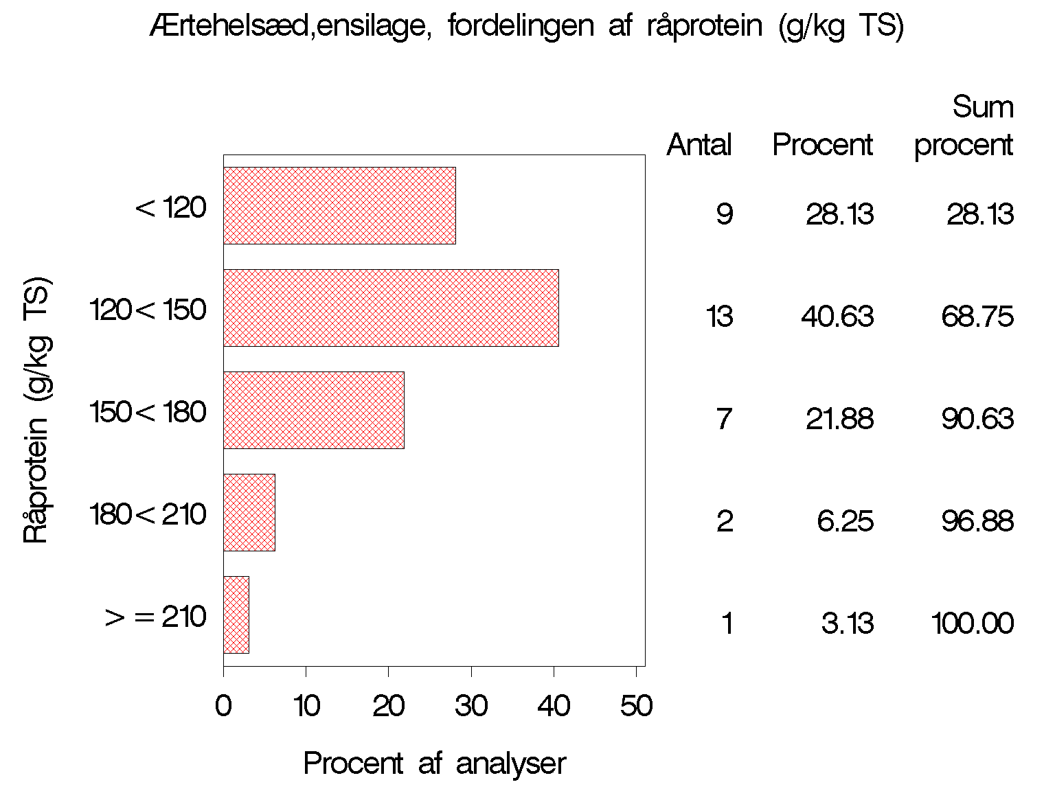 Denne tabel viser foderværdien af de analyserede prøver af ærtehelsæd, ensilage