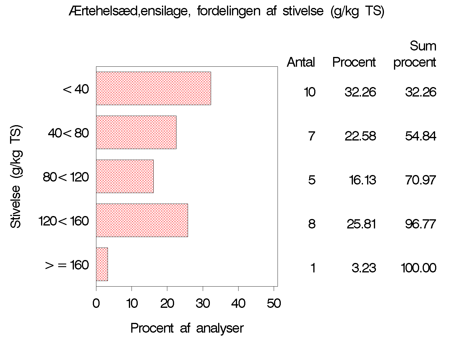 | Stivelse (g/kg TS) | 82 | 133 | 138 | 21 | 150 |