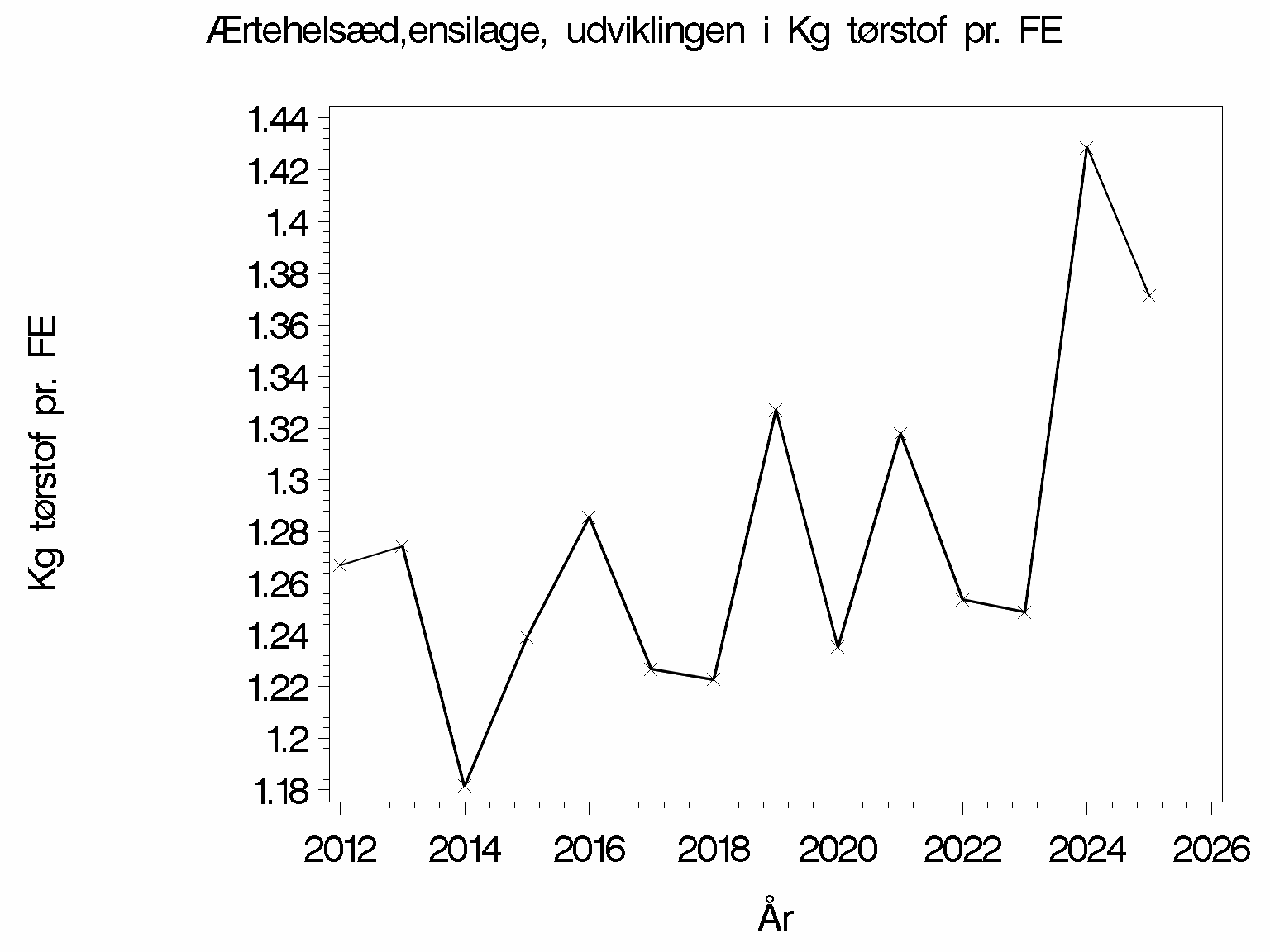 | Kg tørstof pr. FE | 1,37 | 1,25 | 1,25 | 1,14 | 1,56 |