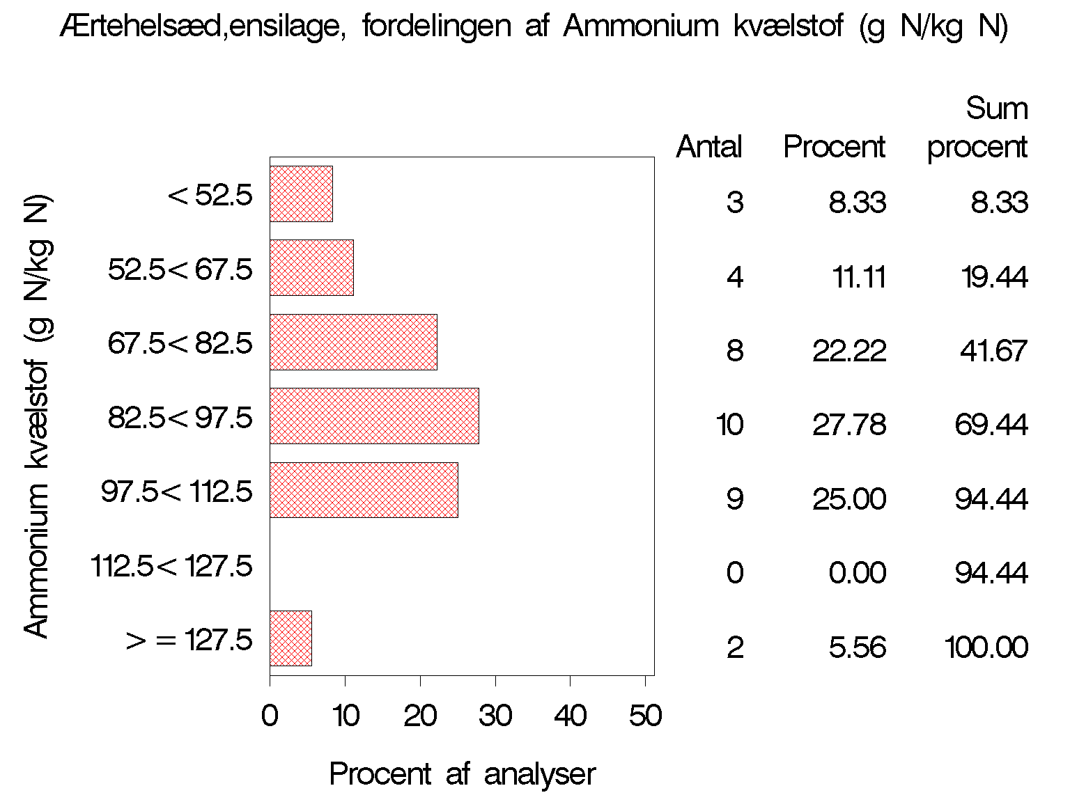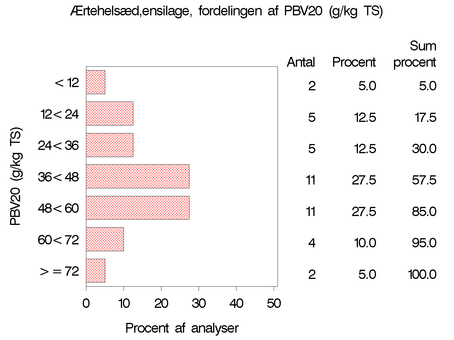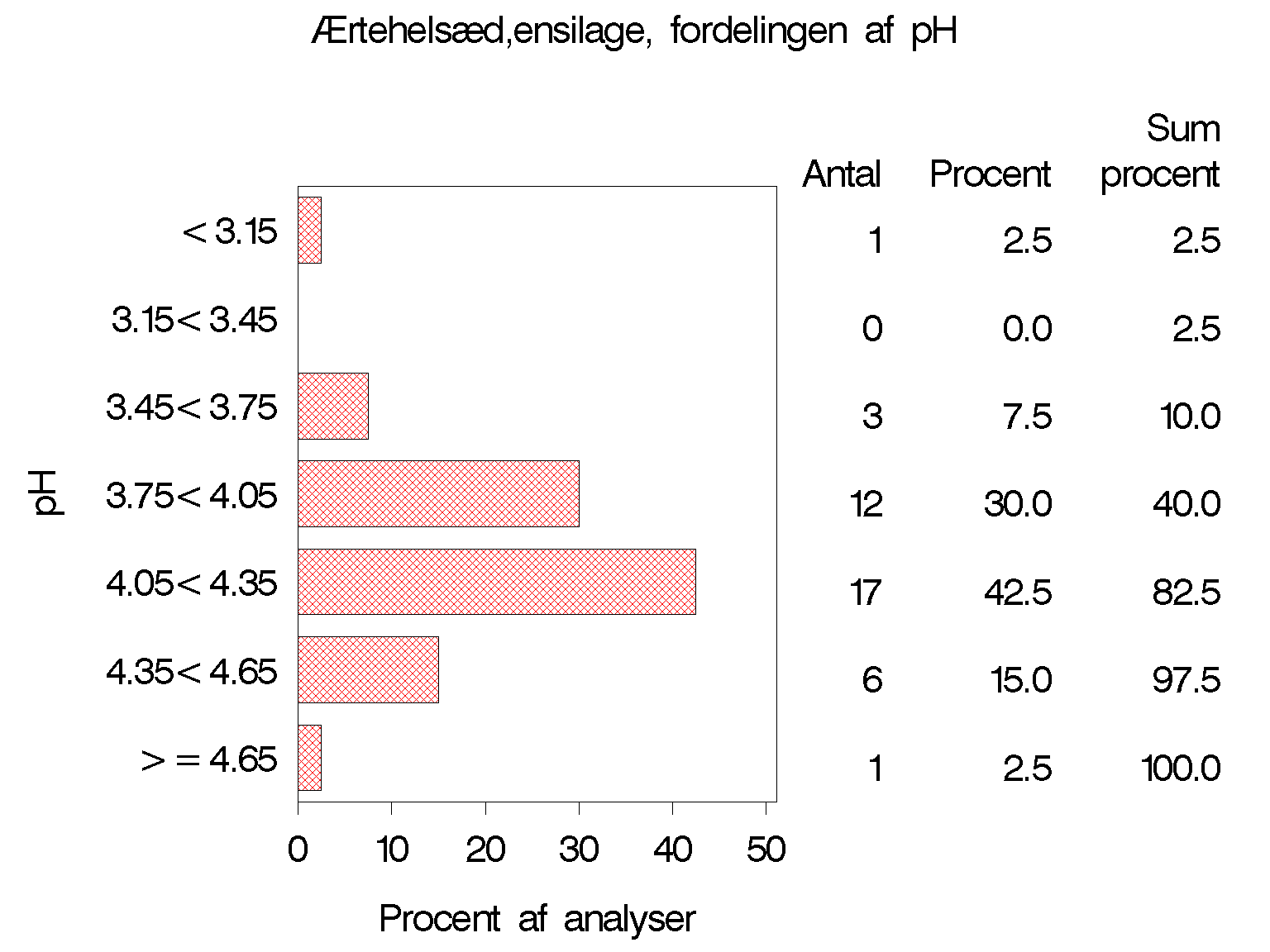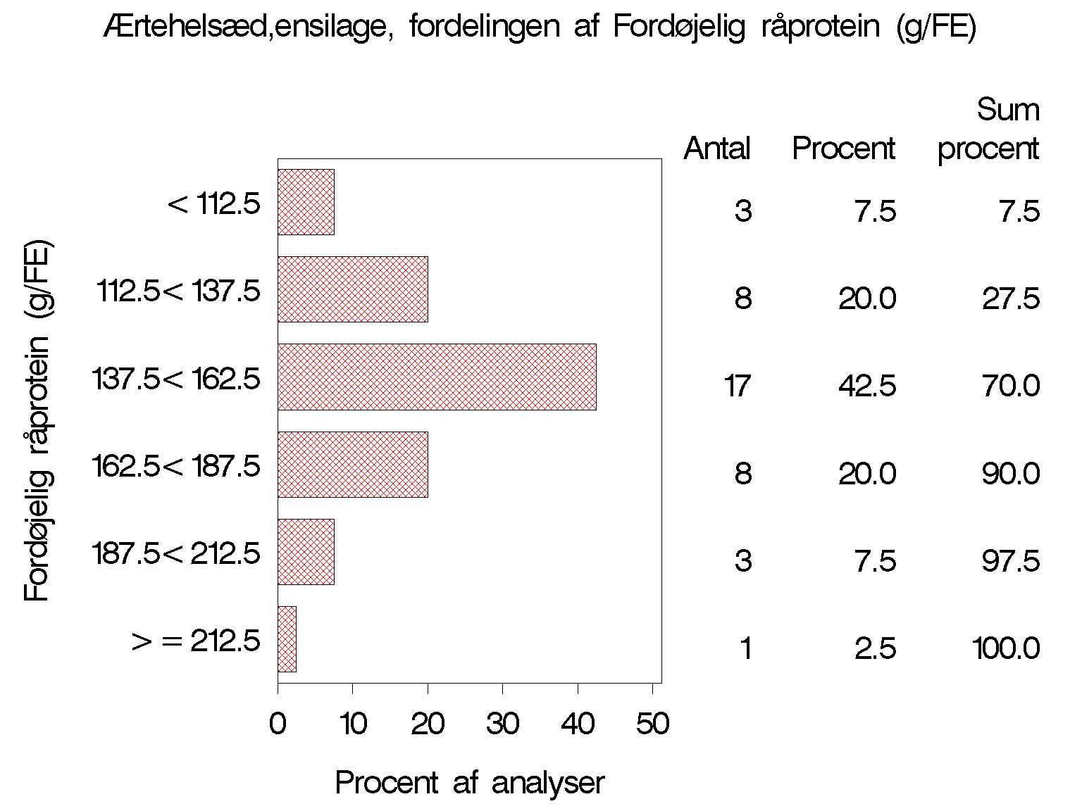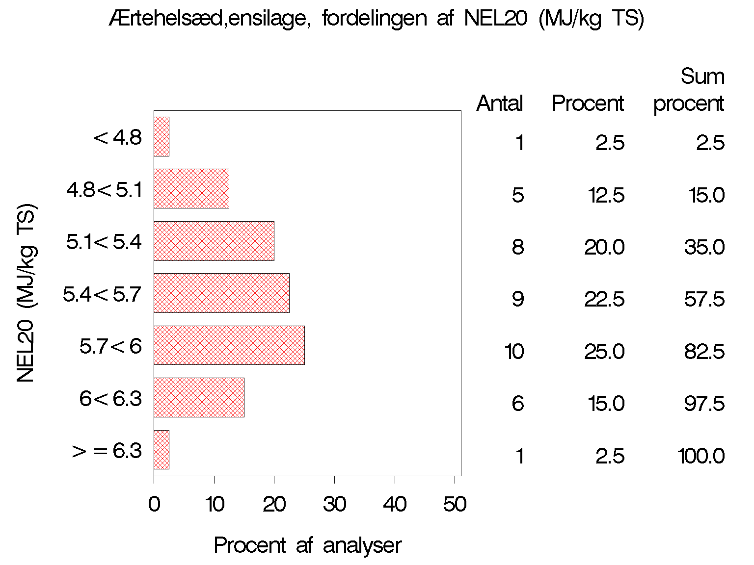 Denne tabel viser foderværdien af de analyserede prøver af ærtehelsæd, ensilage