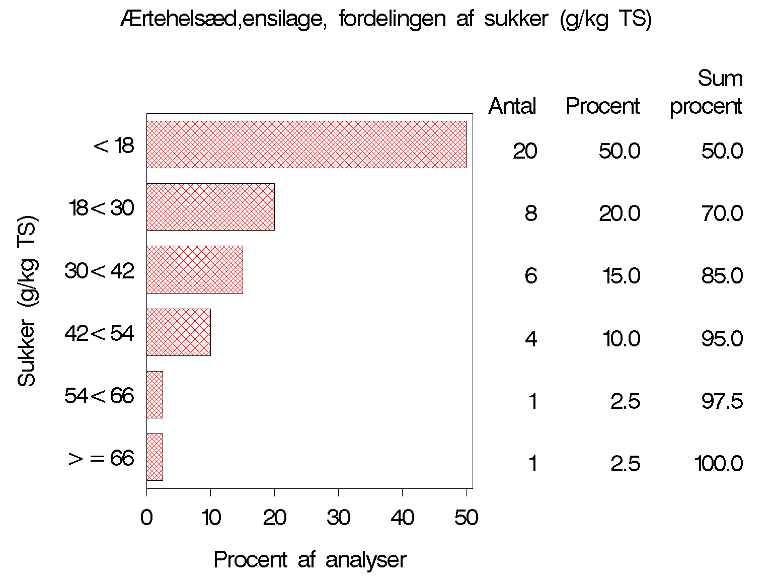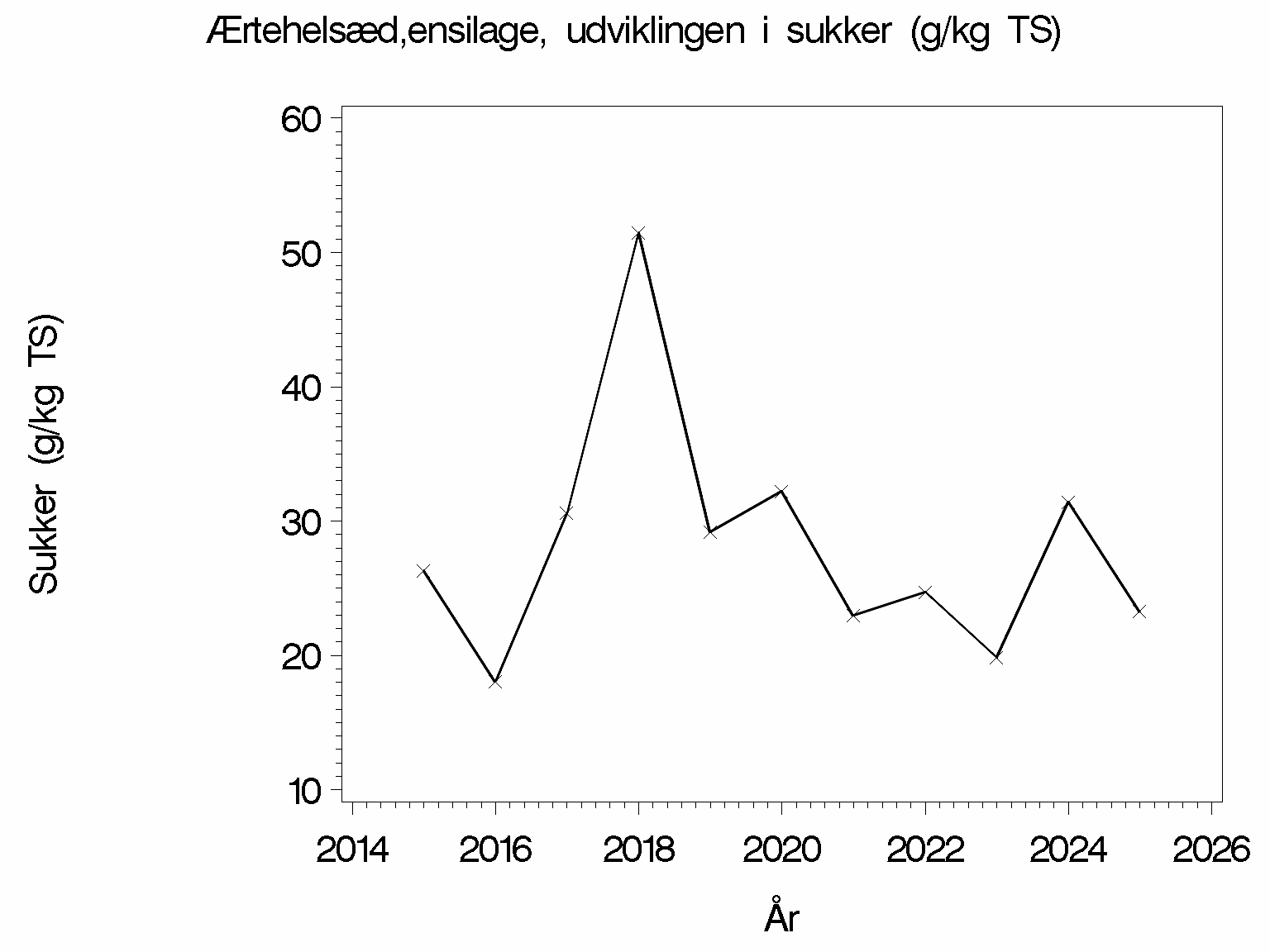 | Sukker (g/kg TS) | 23 | 25 | 23 | 10 | 47 |