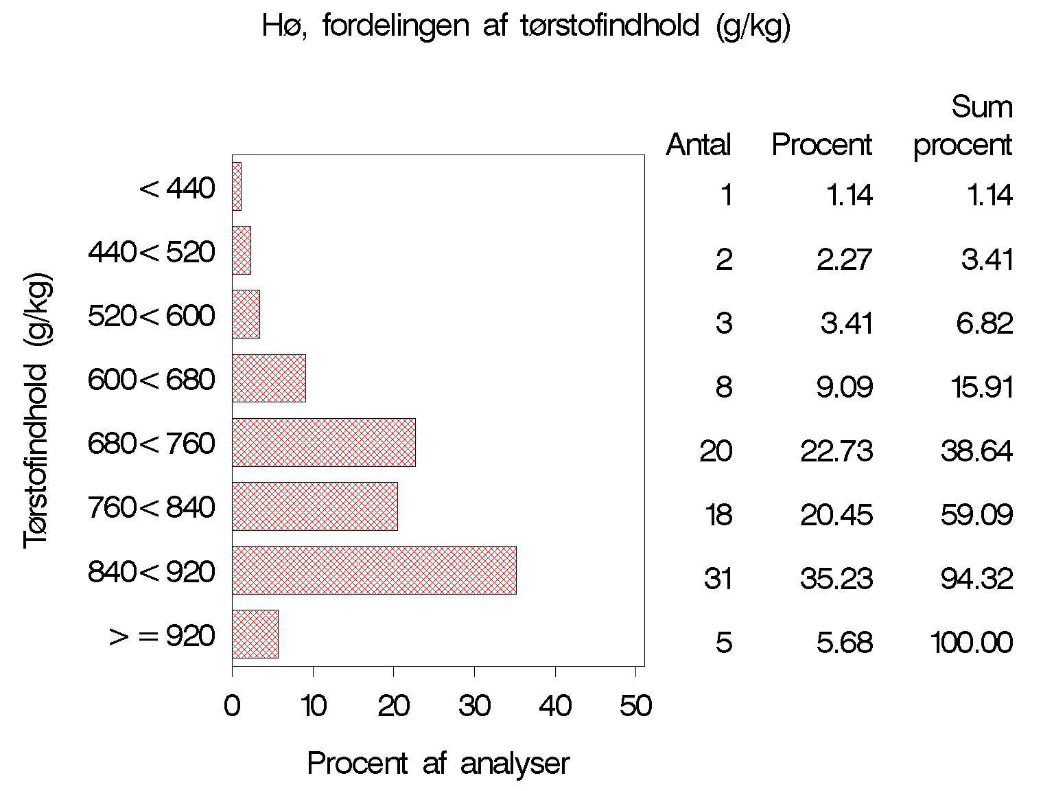 | Tørstofindhold (g/kg) | 783 | 812 | 800 | 631 | 909 |