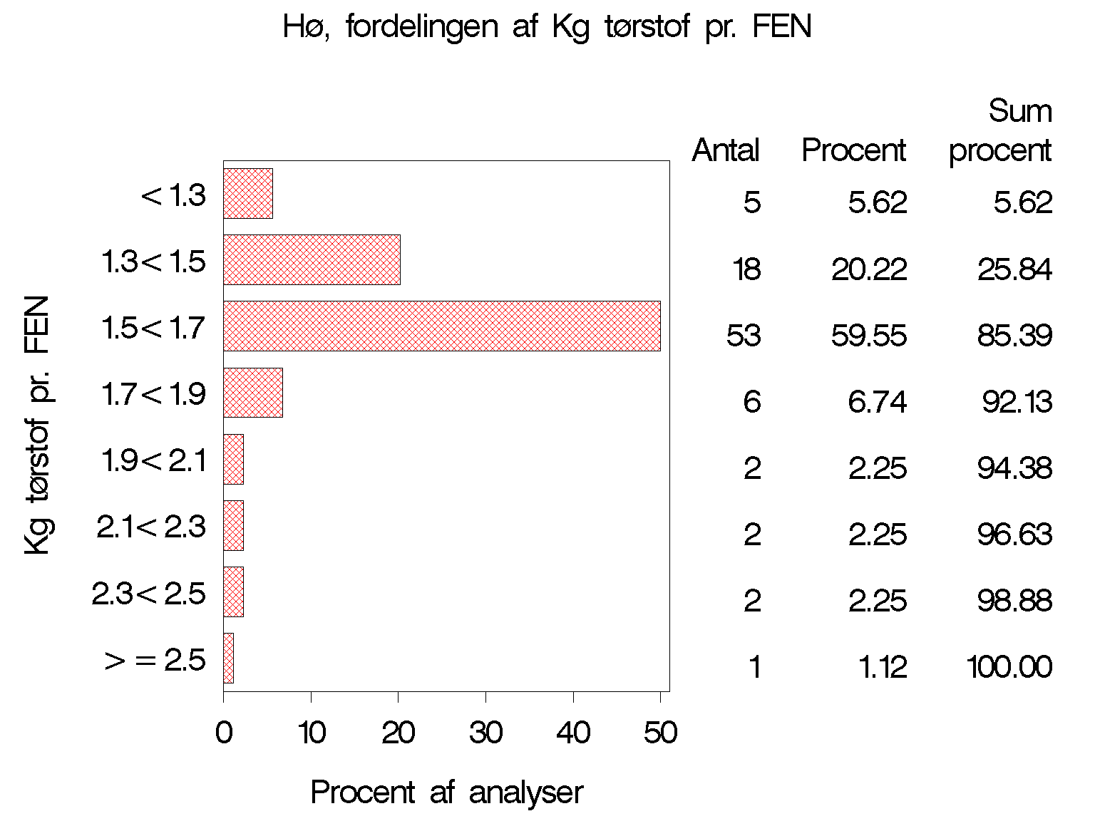 | Kg tørstof pr. FEN | 1,59 | 1,67 | 1,67 | 1,33 | 1,81 |
