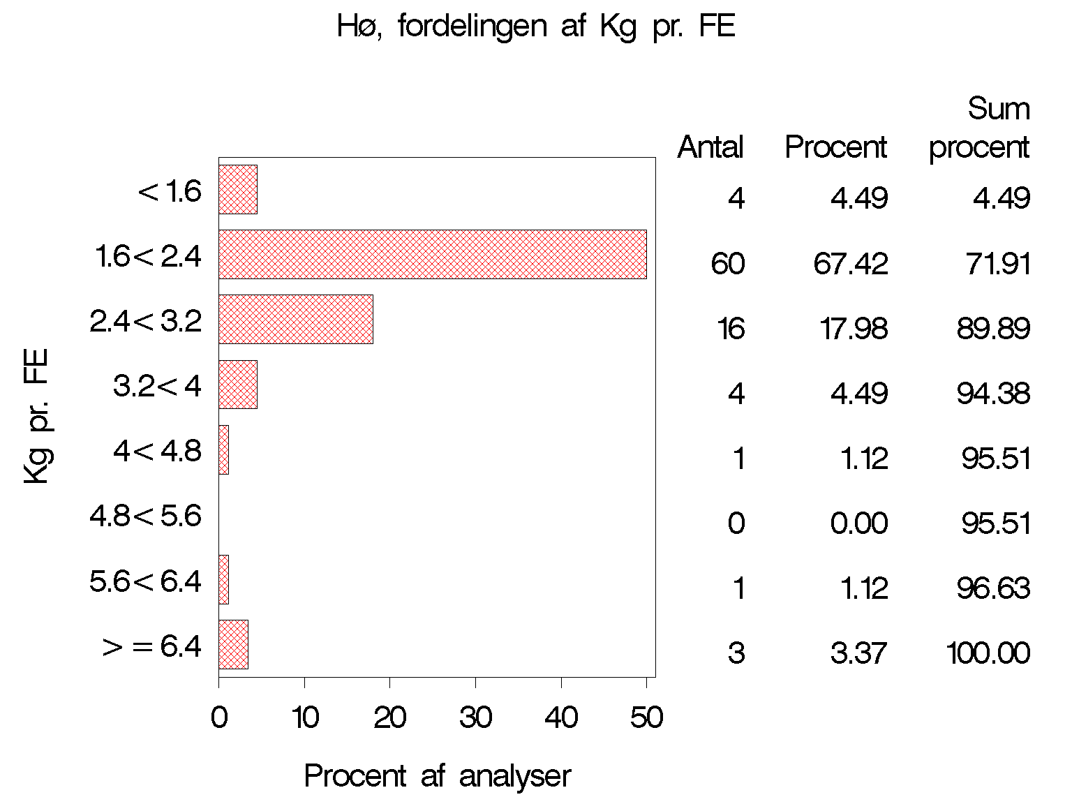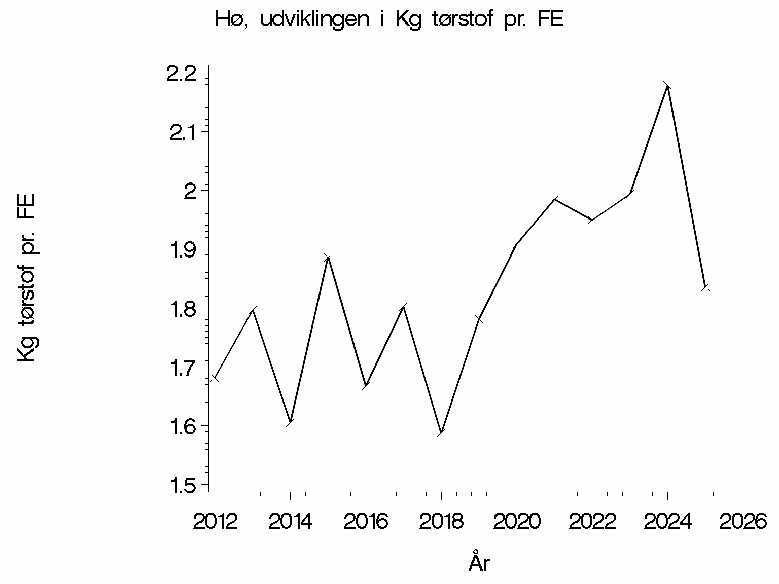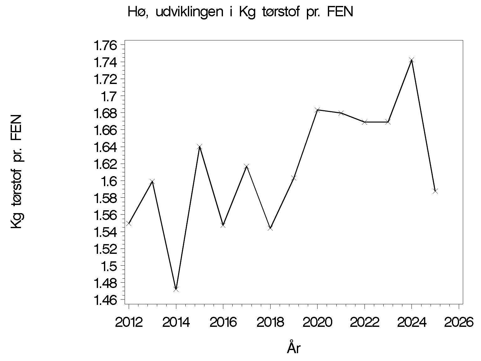 | Kg tørstof pr. FE | 1,84 | 1,95 | 1,97 | 1,30 | 2,32 |