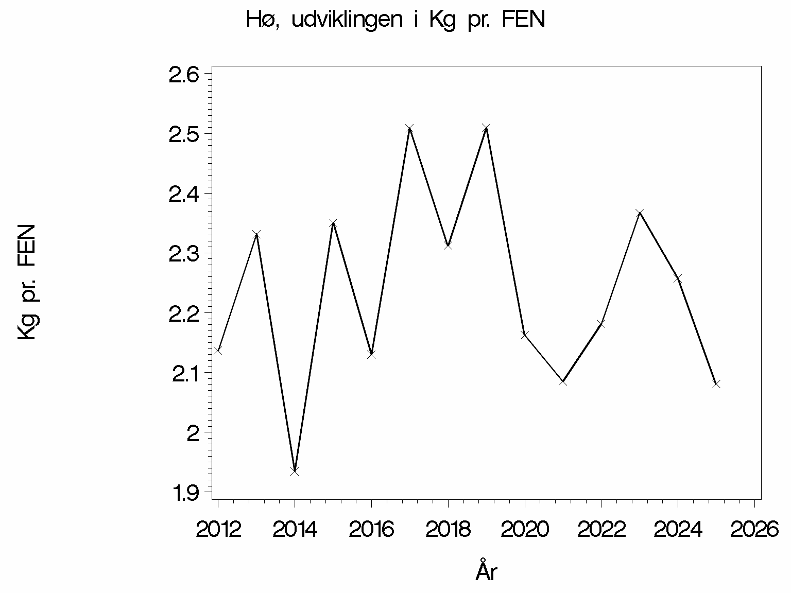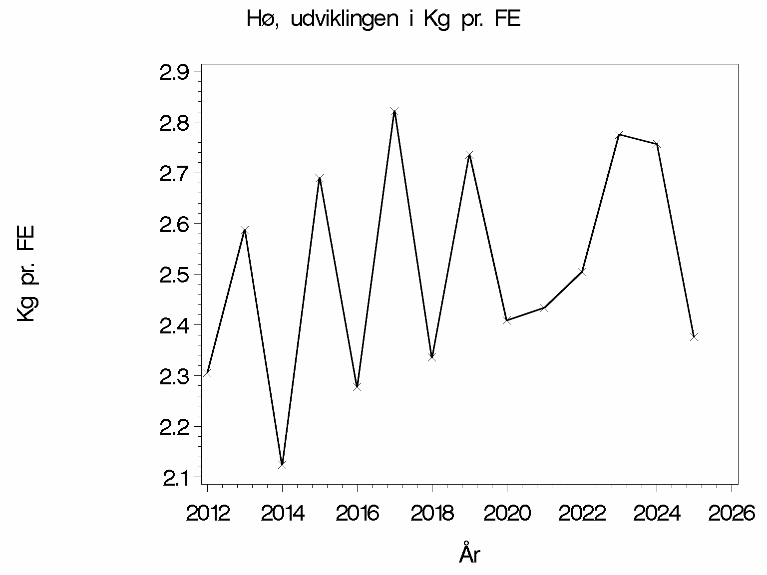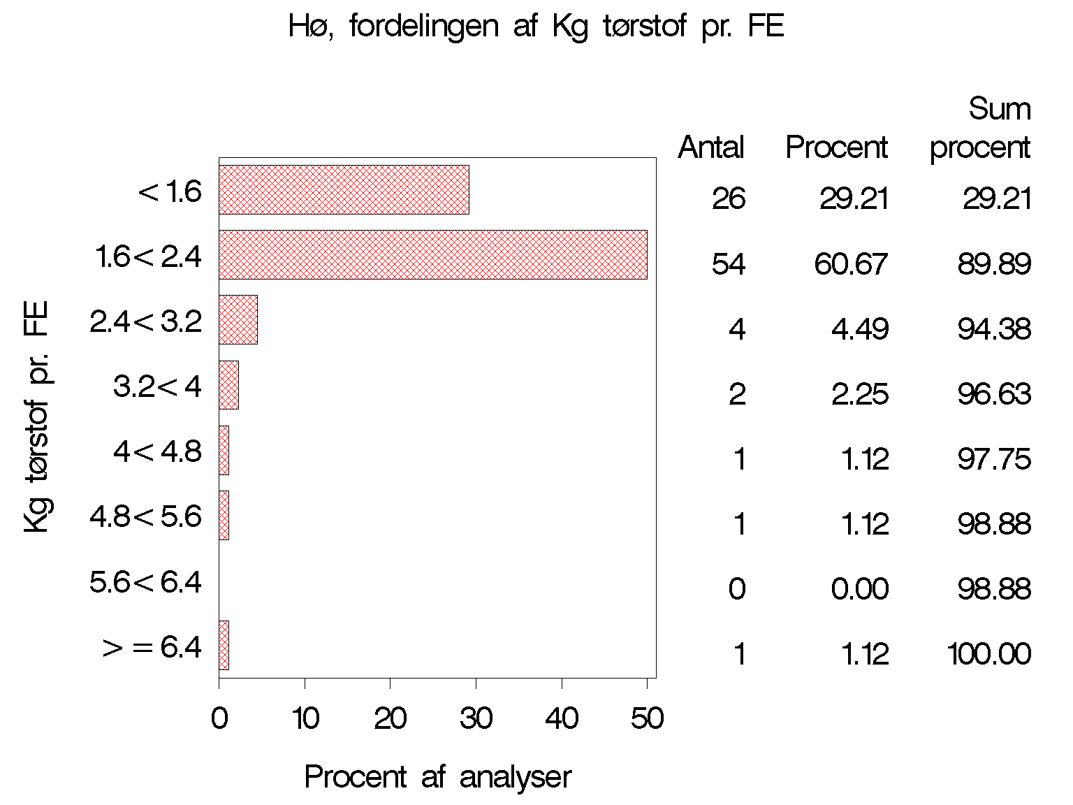 | Kg tørstof pr. FE | 1,84 | 1,95 | 1,97 | 1,30 | 2,32 |
