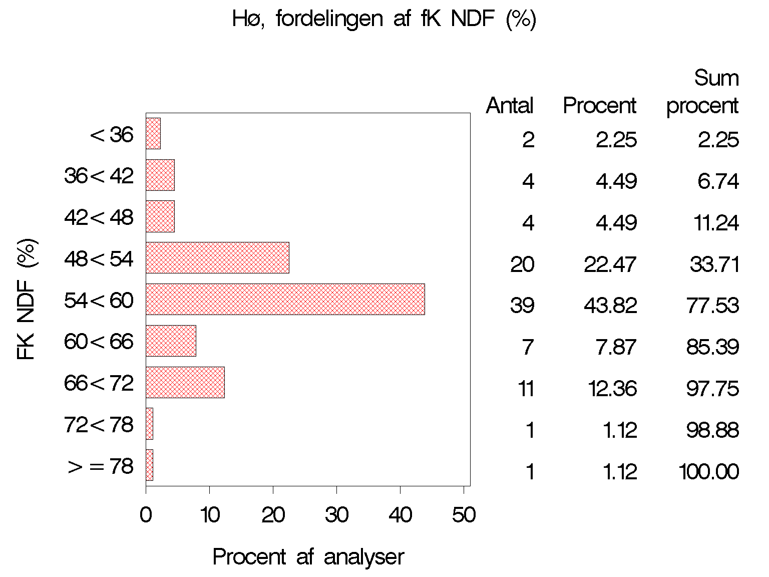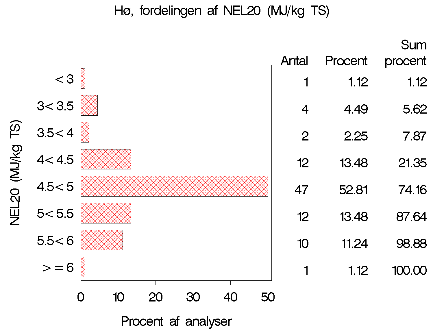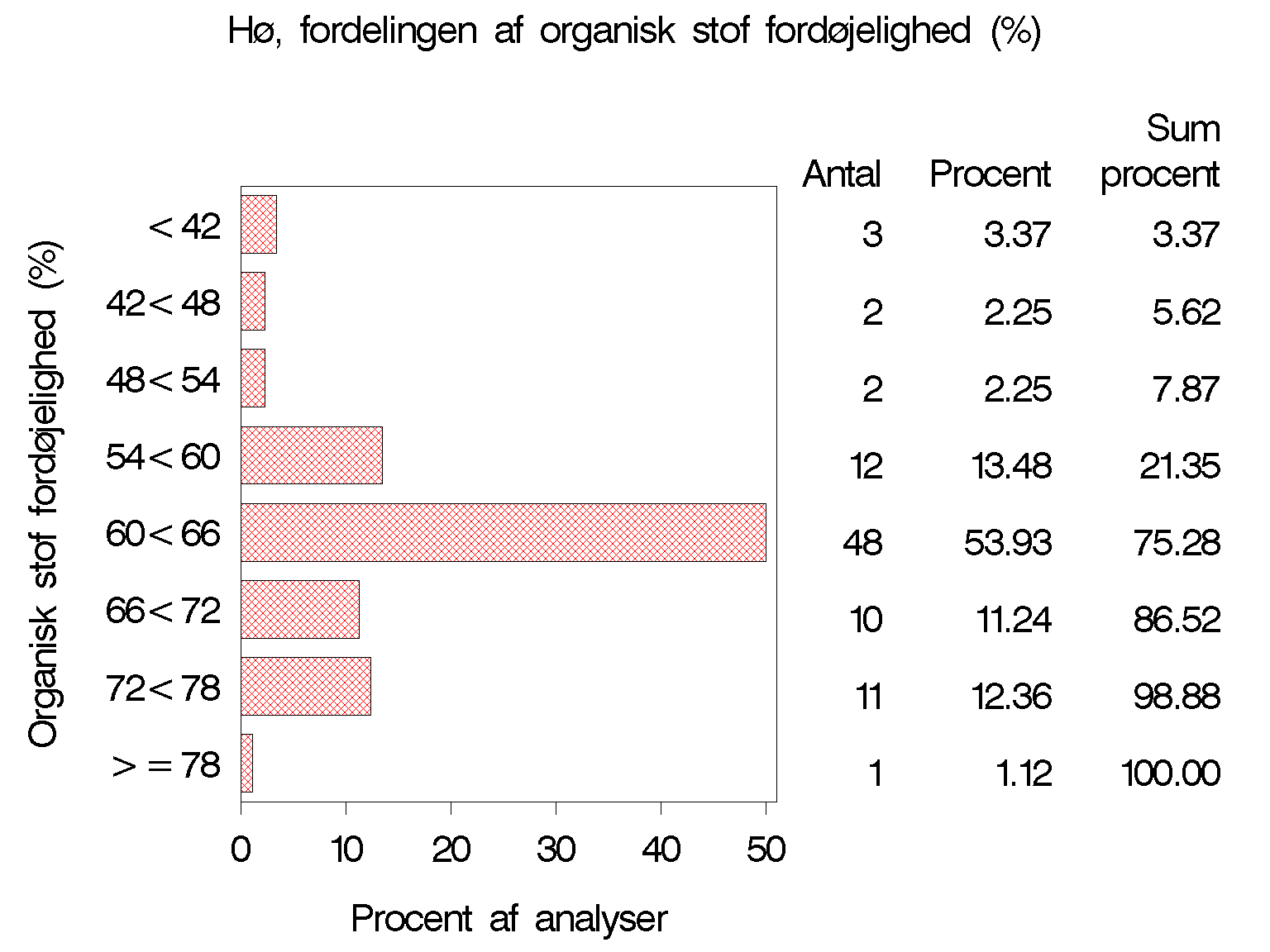 Denne tabel viser foderværdien af de analyserede prøver af hø