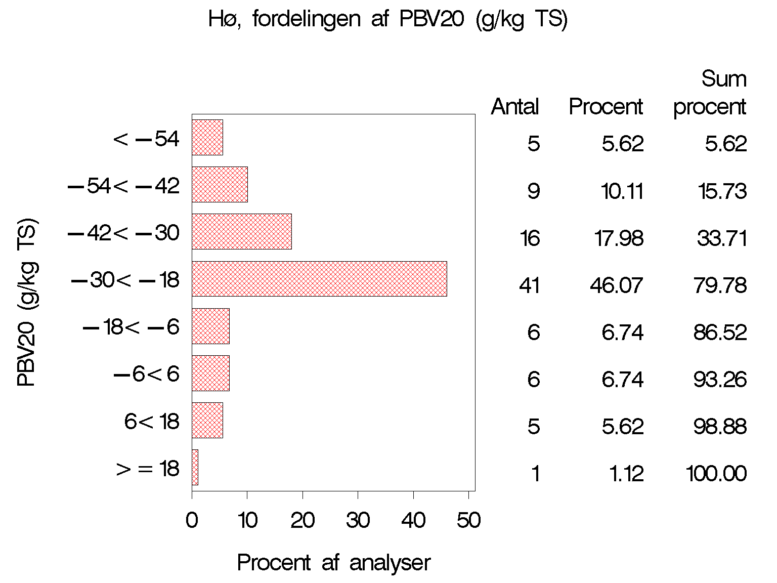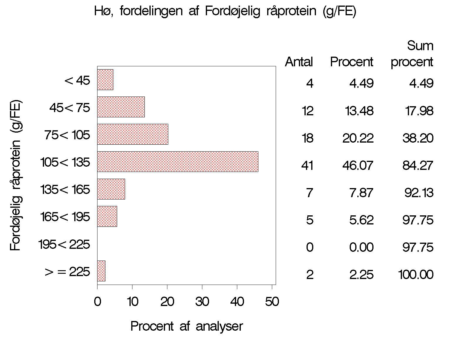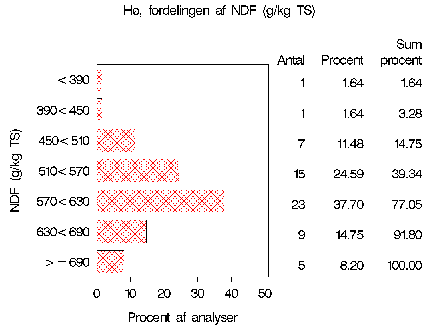 Denne tabel viser foderværdien af de analyserede prøver af hø