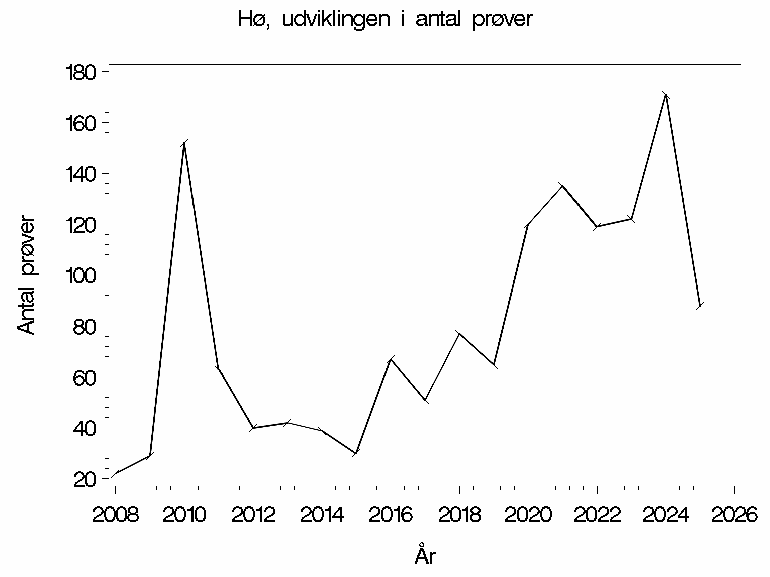 fra det seneste høstår (2025), året før og for de seneste 3 afsluttede høstår (2024, 2023 og 2022).